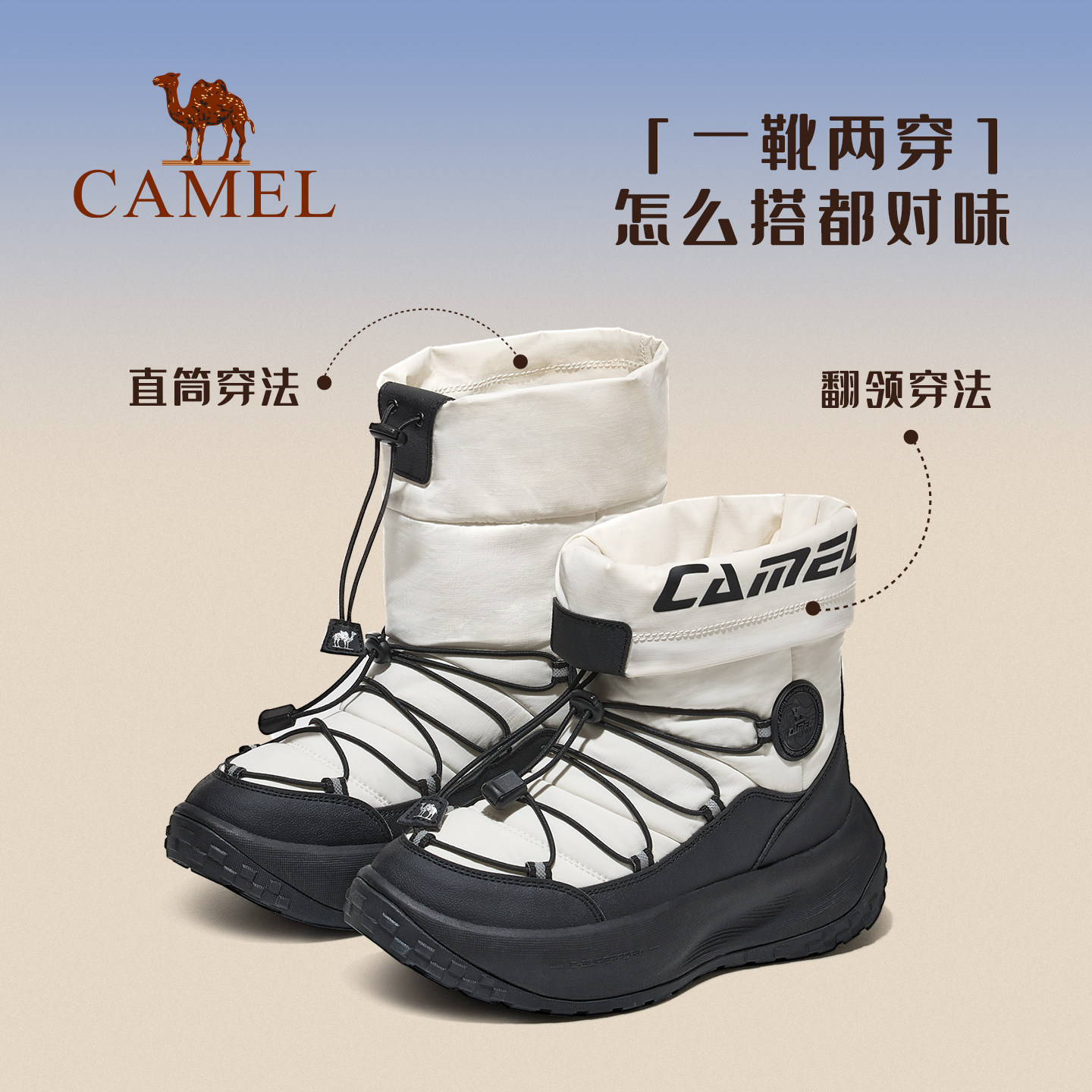 骆驼热雪3.0运动鞋男款2025冬季新款雪地靴防泼水防滑保暖棉鞋男