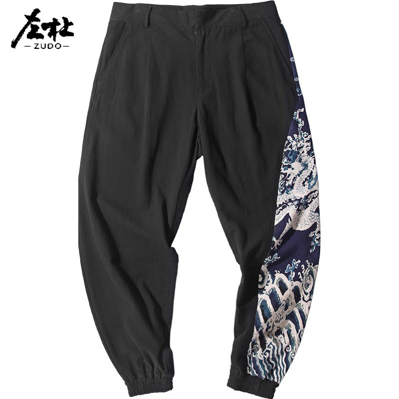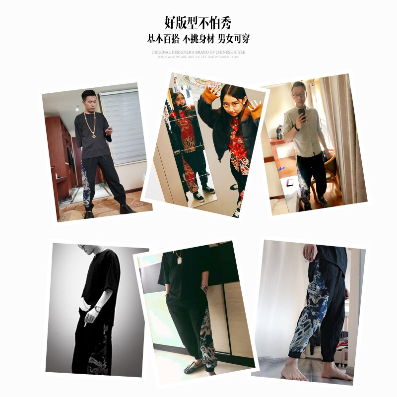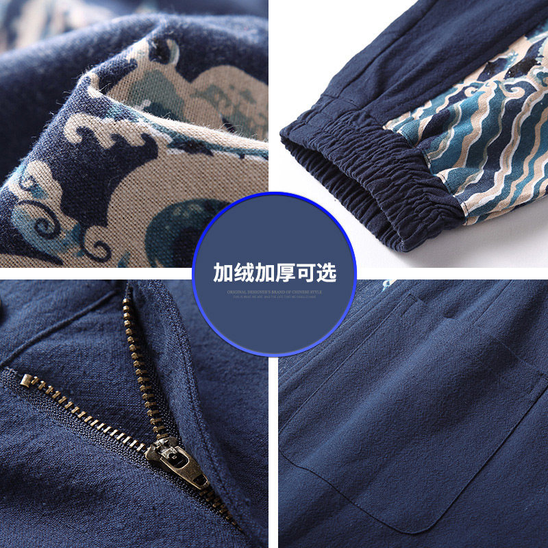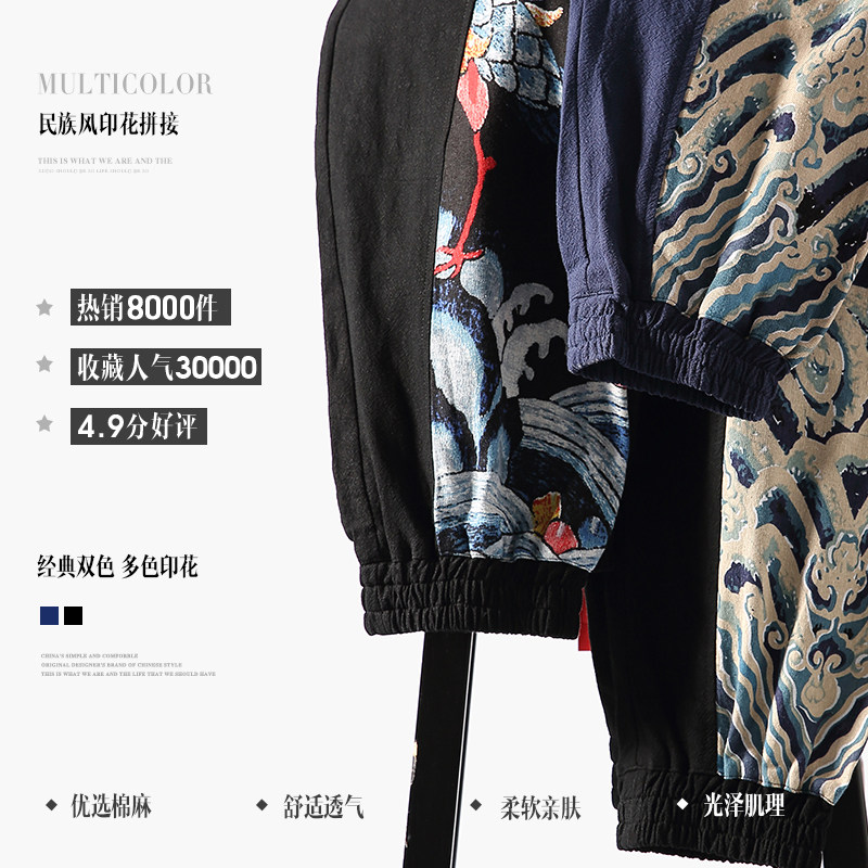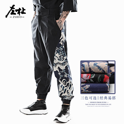 左杜胖子中国风休闲大码亚麻裤