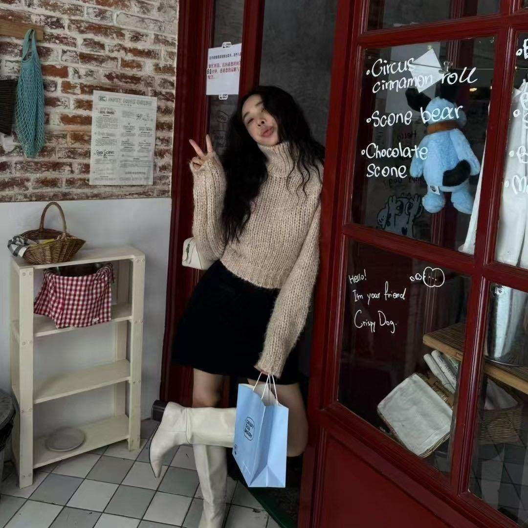 2025冬季新款韩版纯色净版高领百搭显瘦ins风保暖小众短款毛衣女