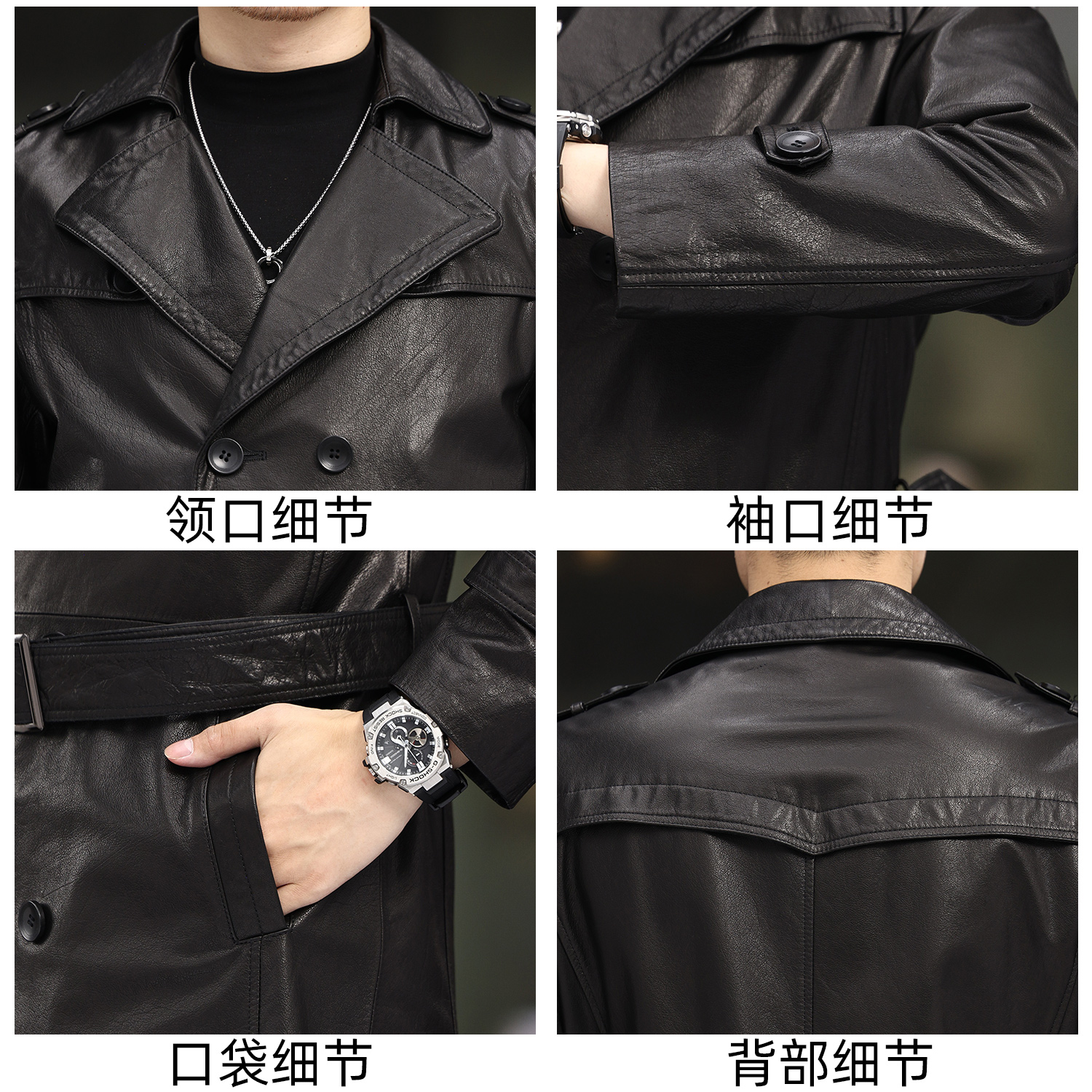 长款真皮风衣男头层牛皮翻领双排扣腰带海宁休闲真皮皮衣外套秋冬