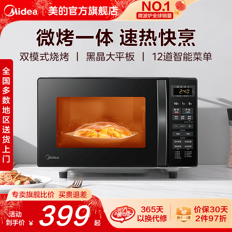 政府补贴换新美的微波炉家用小型平板微烤一体烤箱官方正品L201B