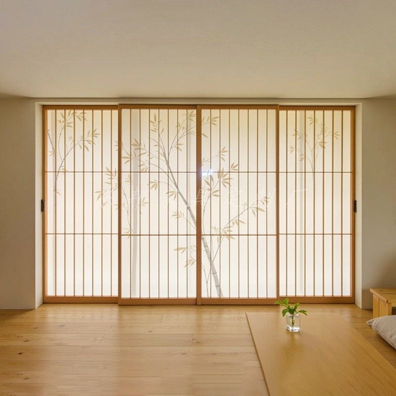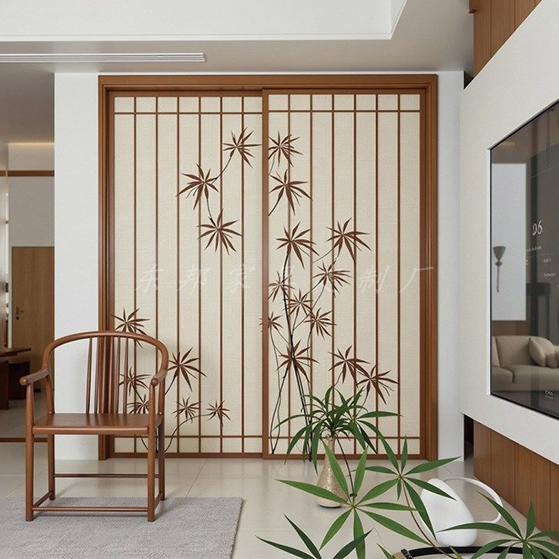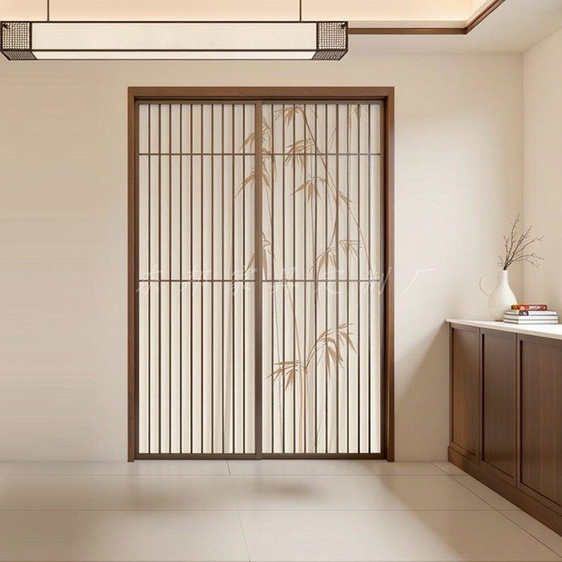 推拉门宋代美学格子移门定制折叠门新中式水墨竹子装饰屏风隔断