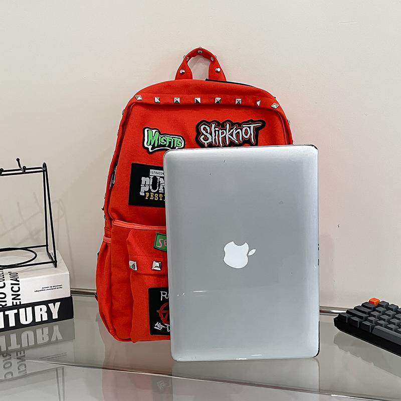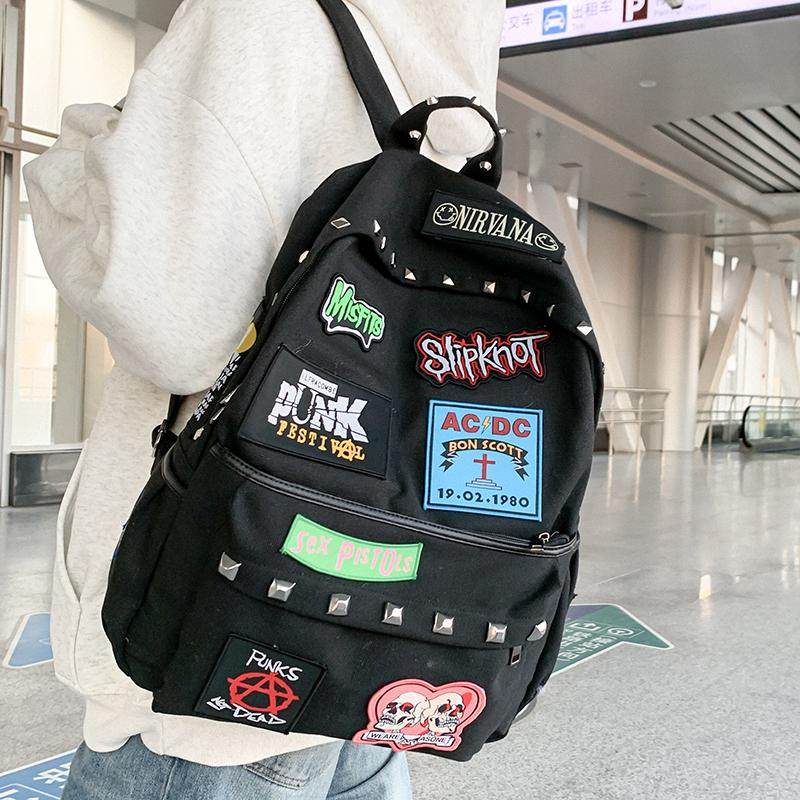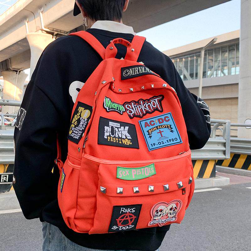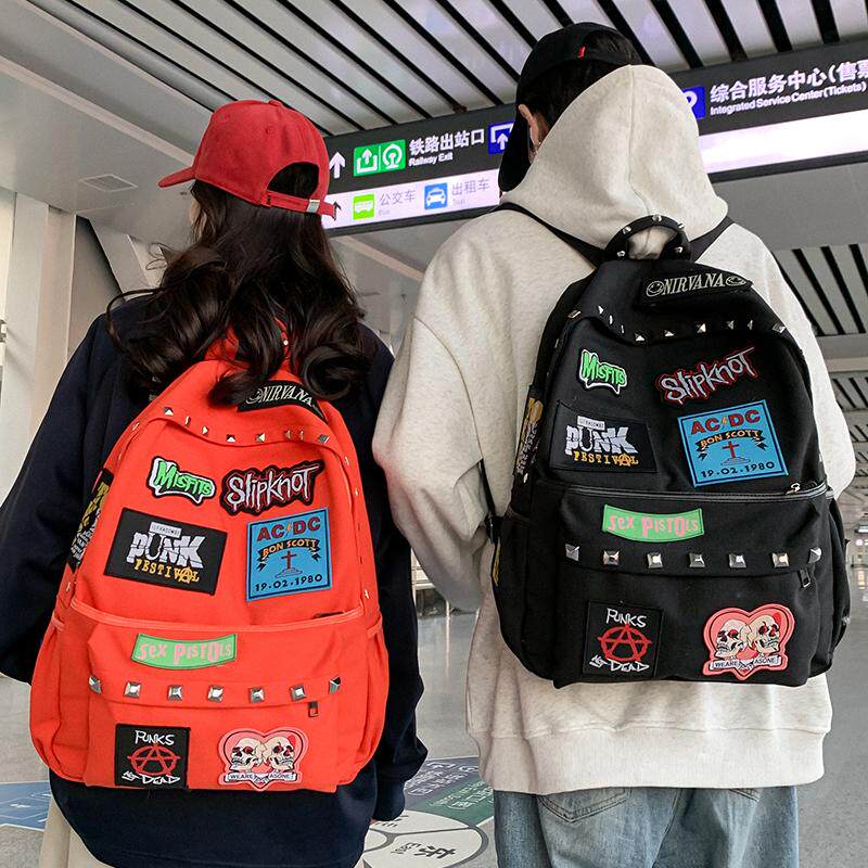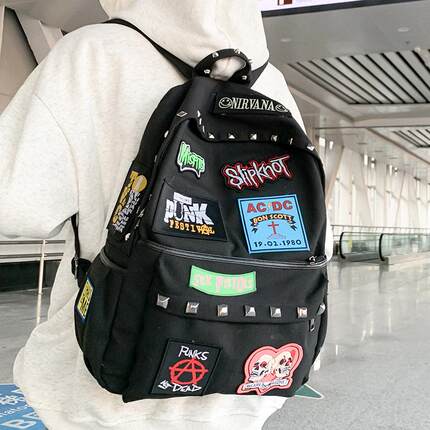高颜值背包男士朋克风新款刺绣铆钉大学生大容量书包个性双肩包女