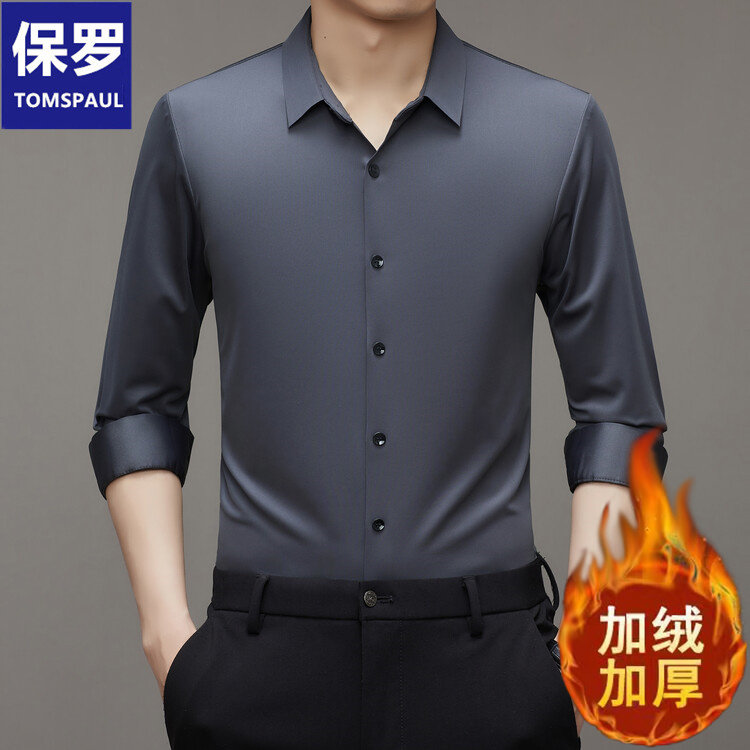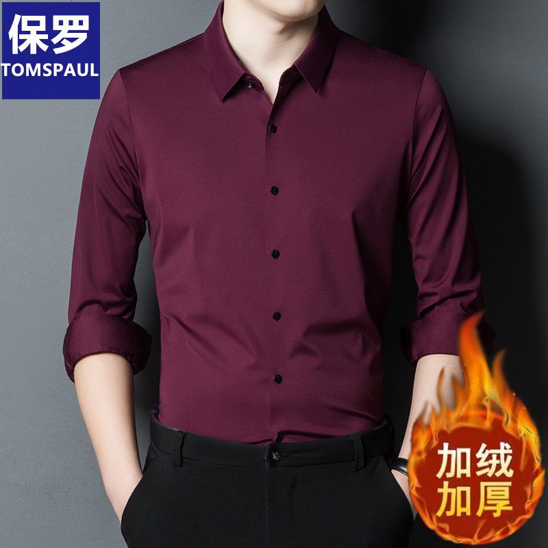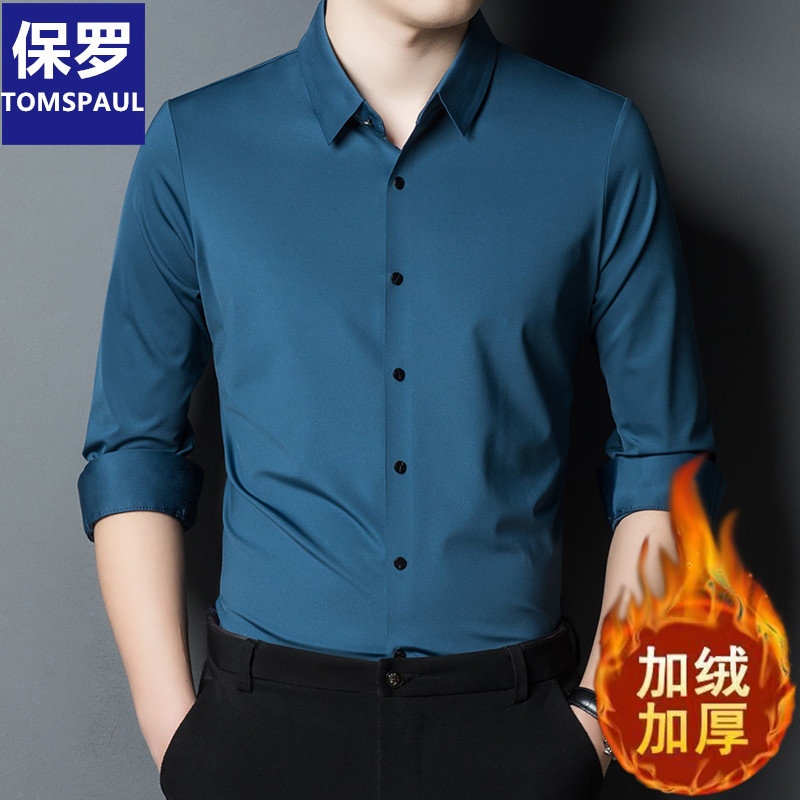 品牌无痕冰丝衬衫男长袖春秋冬新款垂感商务休闲免烫中年衬衣加绒