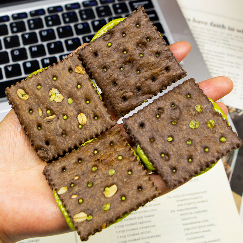 开心果脑袋冲~可可开心果酱牛轧夹心饼干香酥拉丝办公室休闲零食