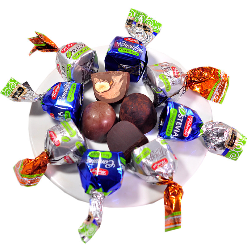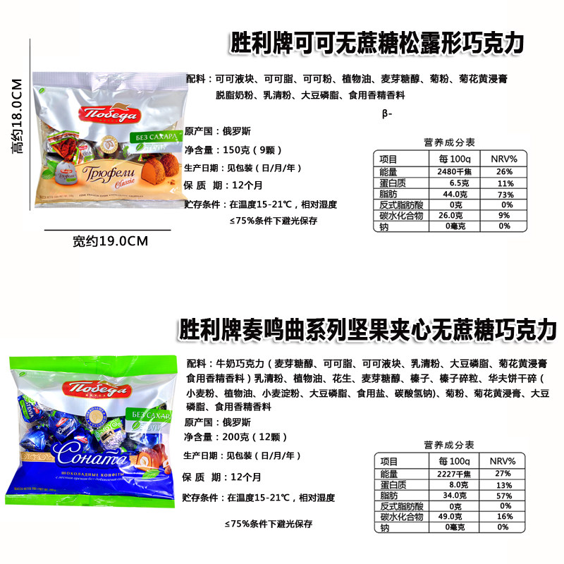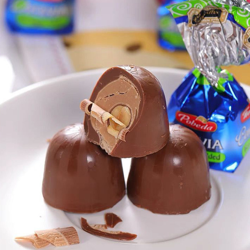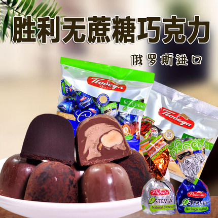 俄罗斯原装进口胜利无蔗糖可可脂坚果夹心巧克力糖果松露代餐食品