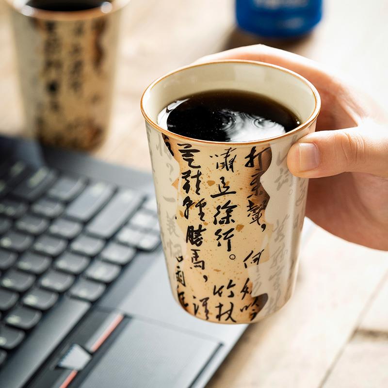 汝窑定风波茶杯可乐杯个人专用主人杯大容量中式创意家用陶瓷水杯
