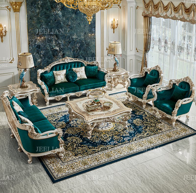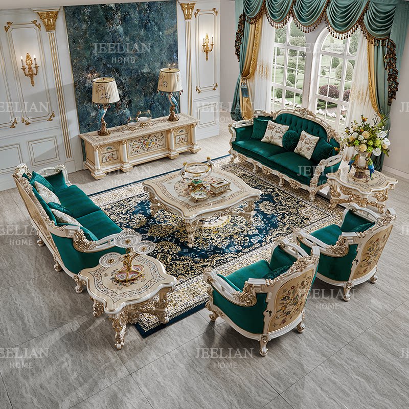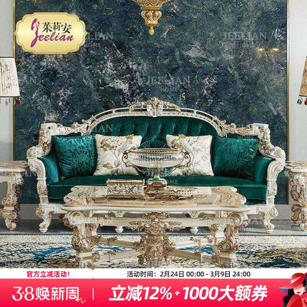 【秘境】茱莉安实木重工雕花木皮贝壳拼花法式奢华别墅客厅沙发