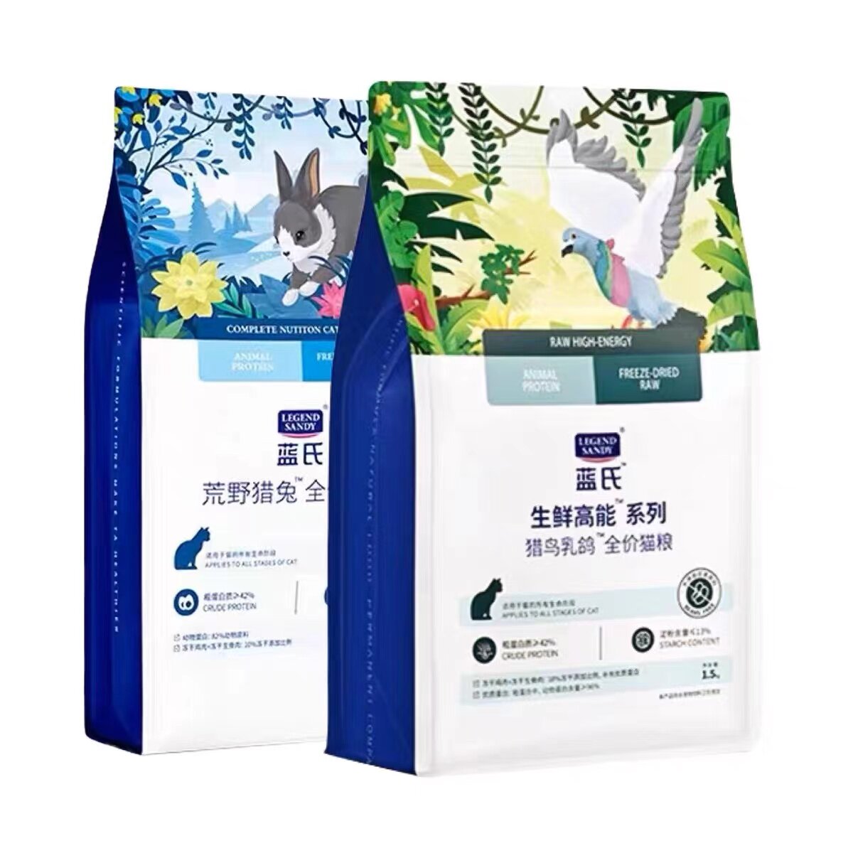 蓝氏猫粮猎鸟乳鸽荒野猎兔全价冻干生骨肉幼成猫通用猫主粮1.5kg