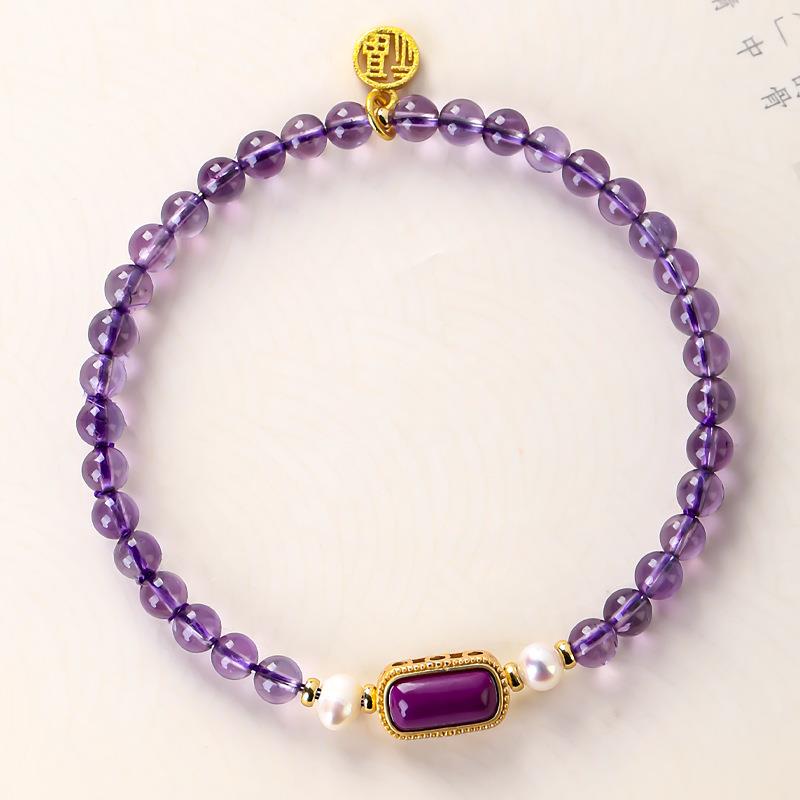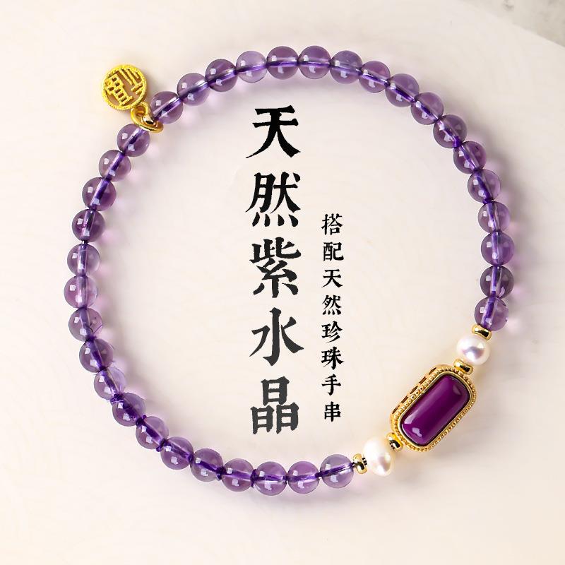 2025天然紫水晶送闺蜜手链女新款手串轻奢珍珠饰品上岸紫水晶手饰