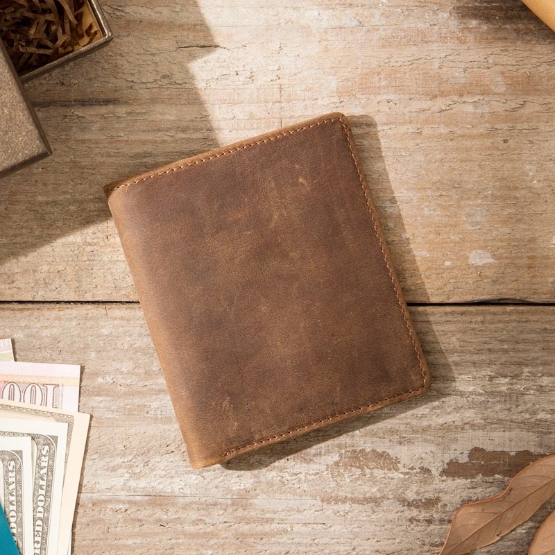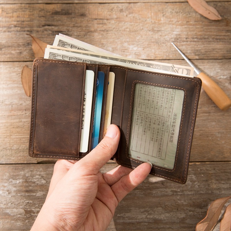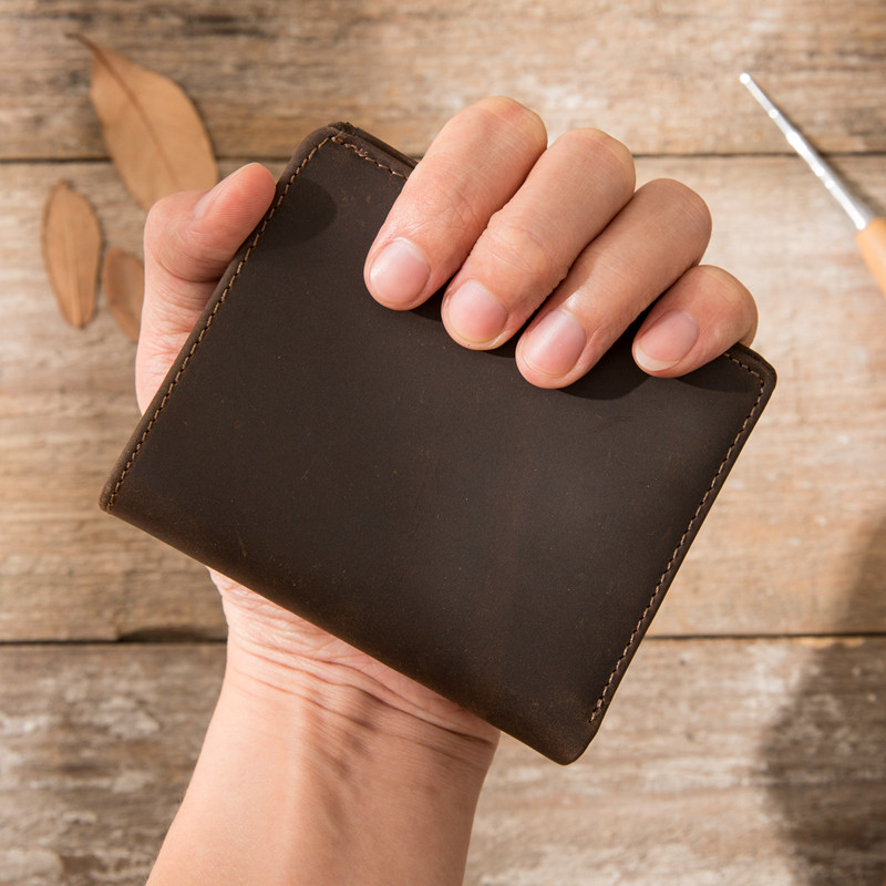 原创手工钱包短款男士真皮头层牛皮疯马皮简约复古超薄款小款钱夹