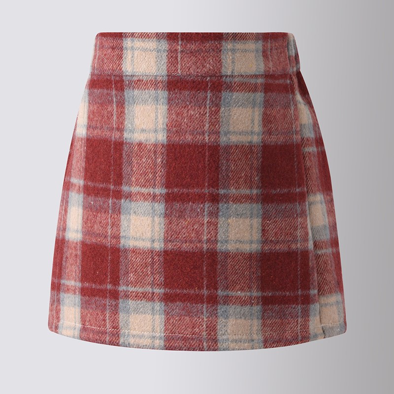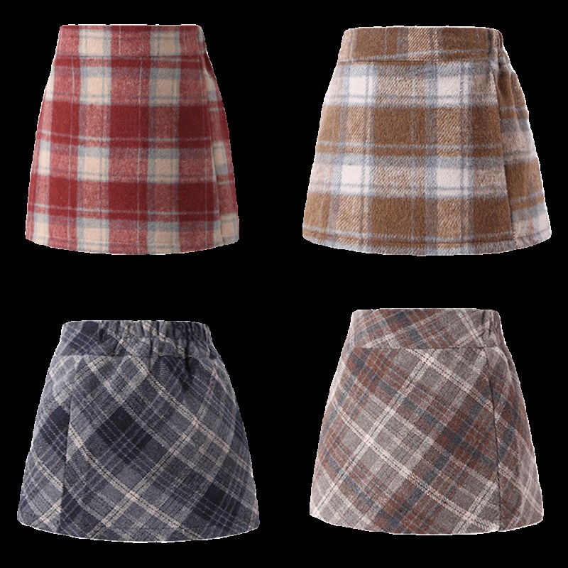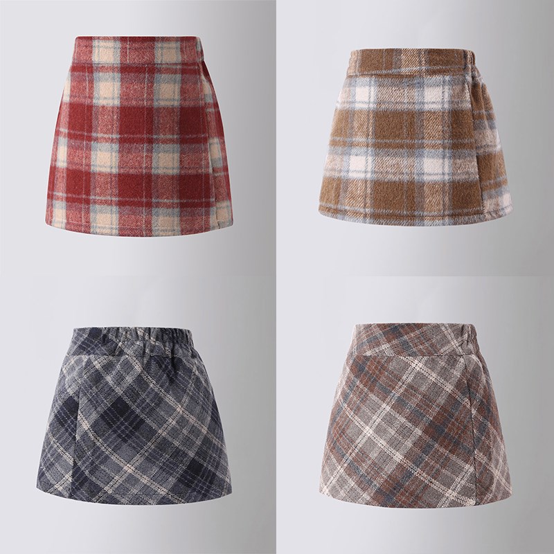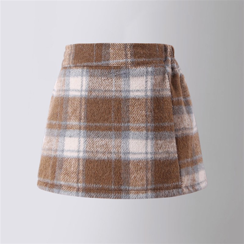 女童短裙秋冬毛呢包臀裙小女孩a字半身裙中大童复古A格子半裙宝宝