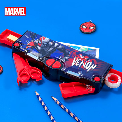 迪士尼毒液多功能文具盒小学生一年级塑料机关自动铅笔盒双层带卷笔刀乘法口诀表男孩子高科技笔袋男生幼儿园
