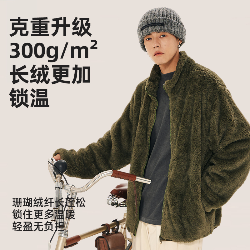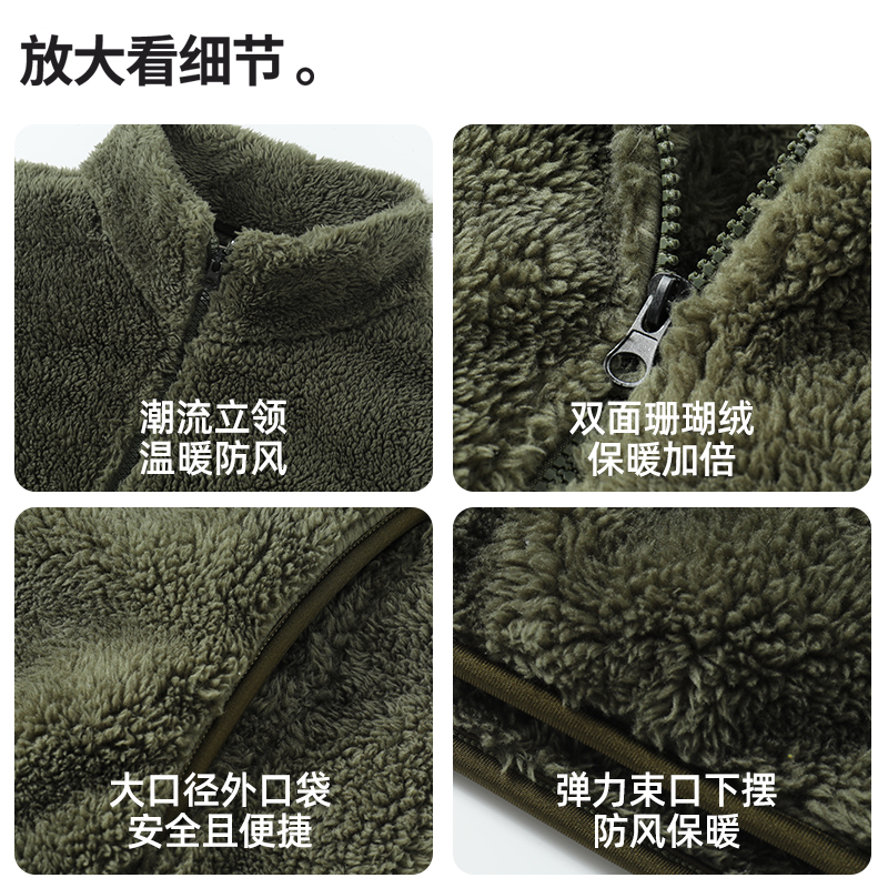 GV真维斯珊瑚绒外套男秋冬季保暖加绒加厚夹克男款摇粒绒抓绒衣A