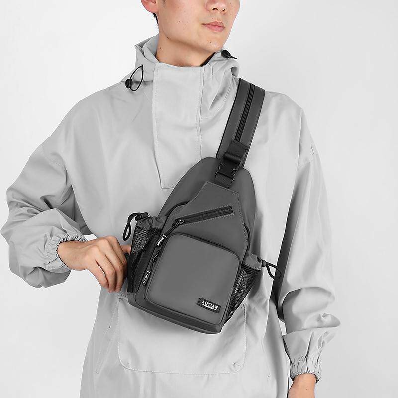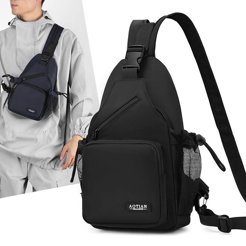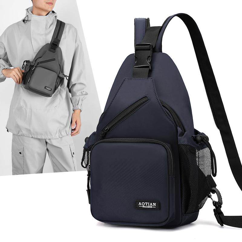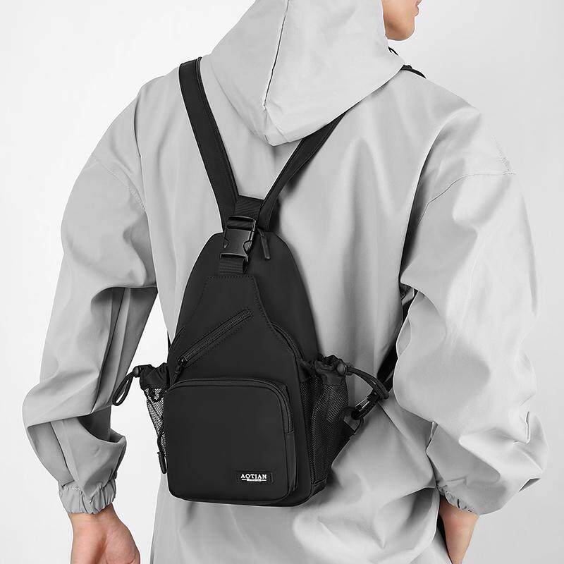 斜挎包男多功能胸包水杯袋户外运动旅行小背包牛津布迷你双肩包