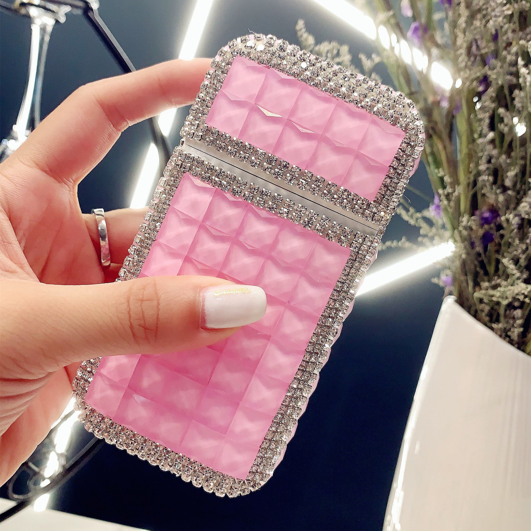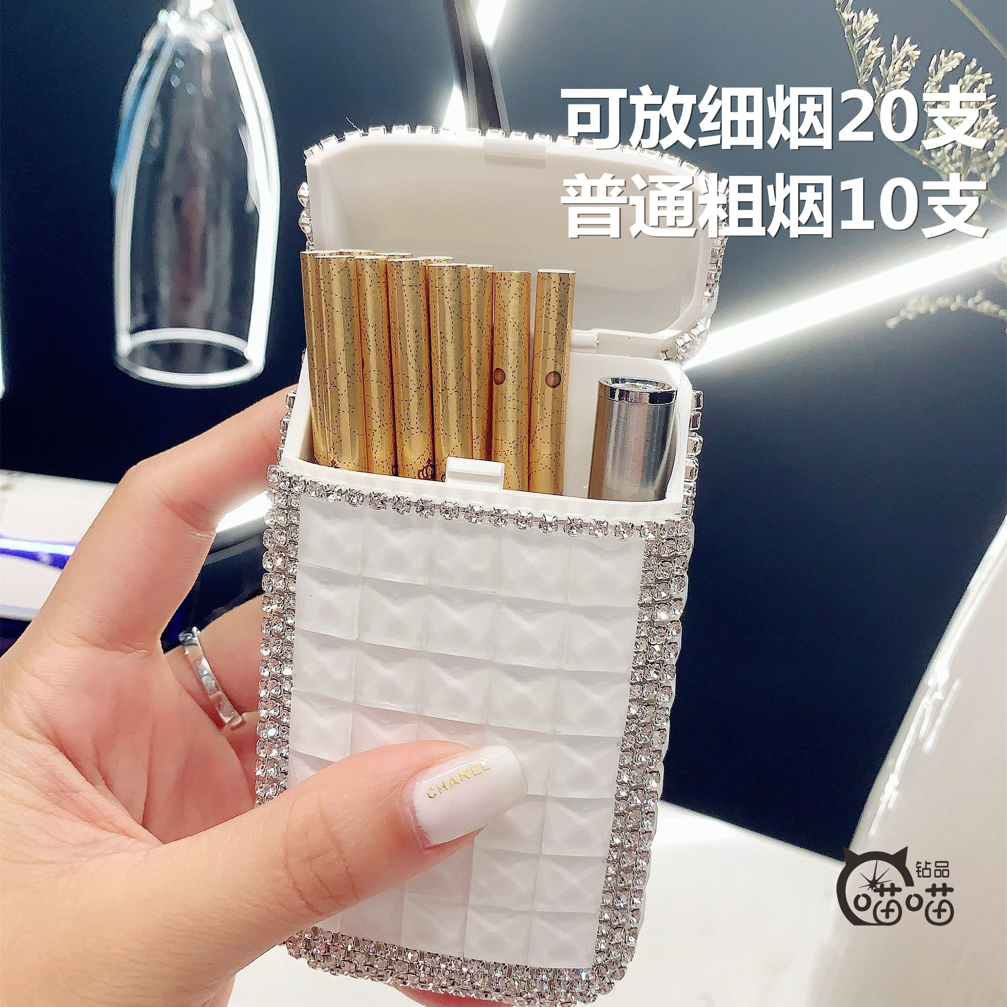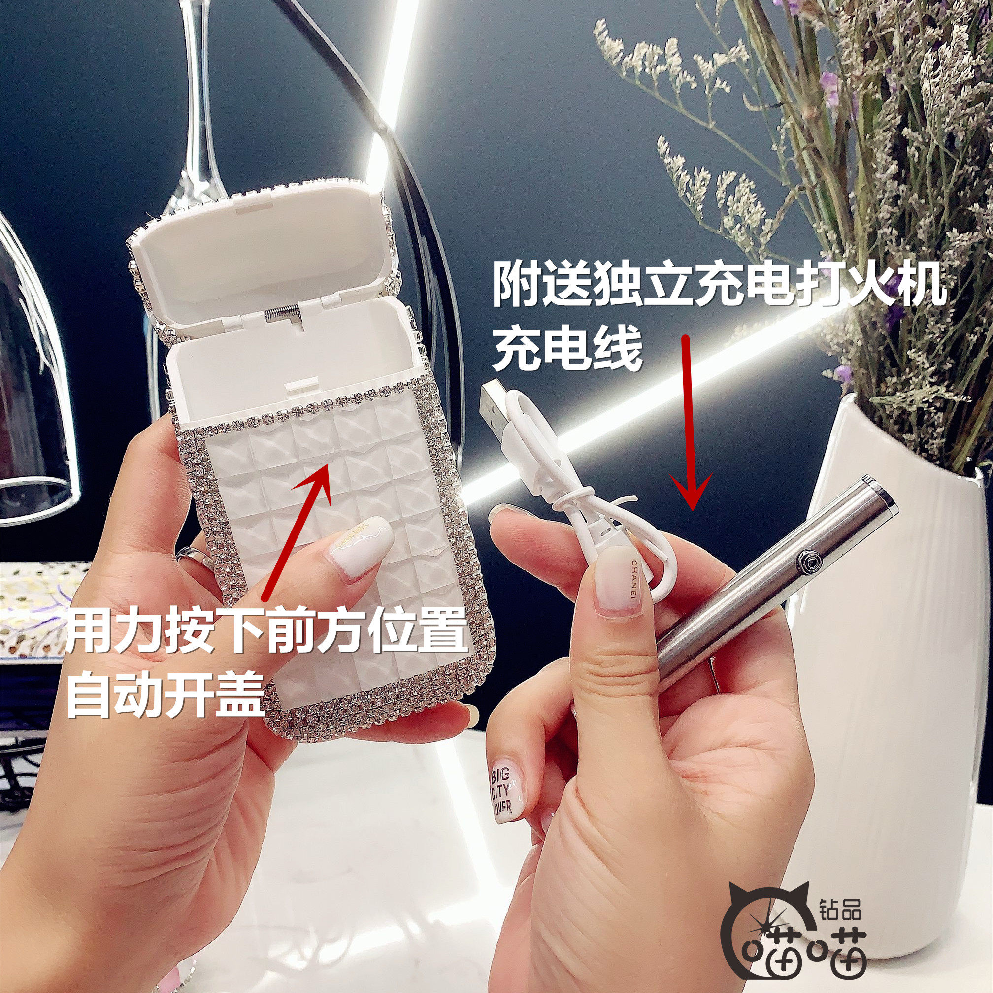 满钻 细长自动开盖烟盒 带USB充电打火机 宝石 加长女士20支 烟盒