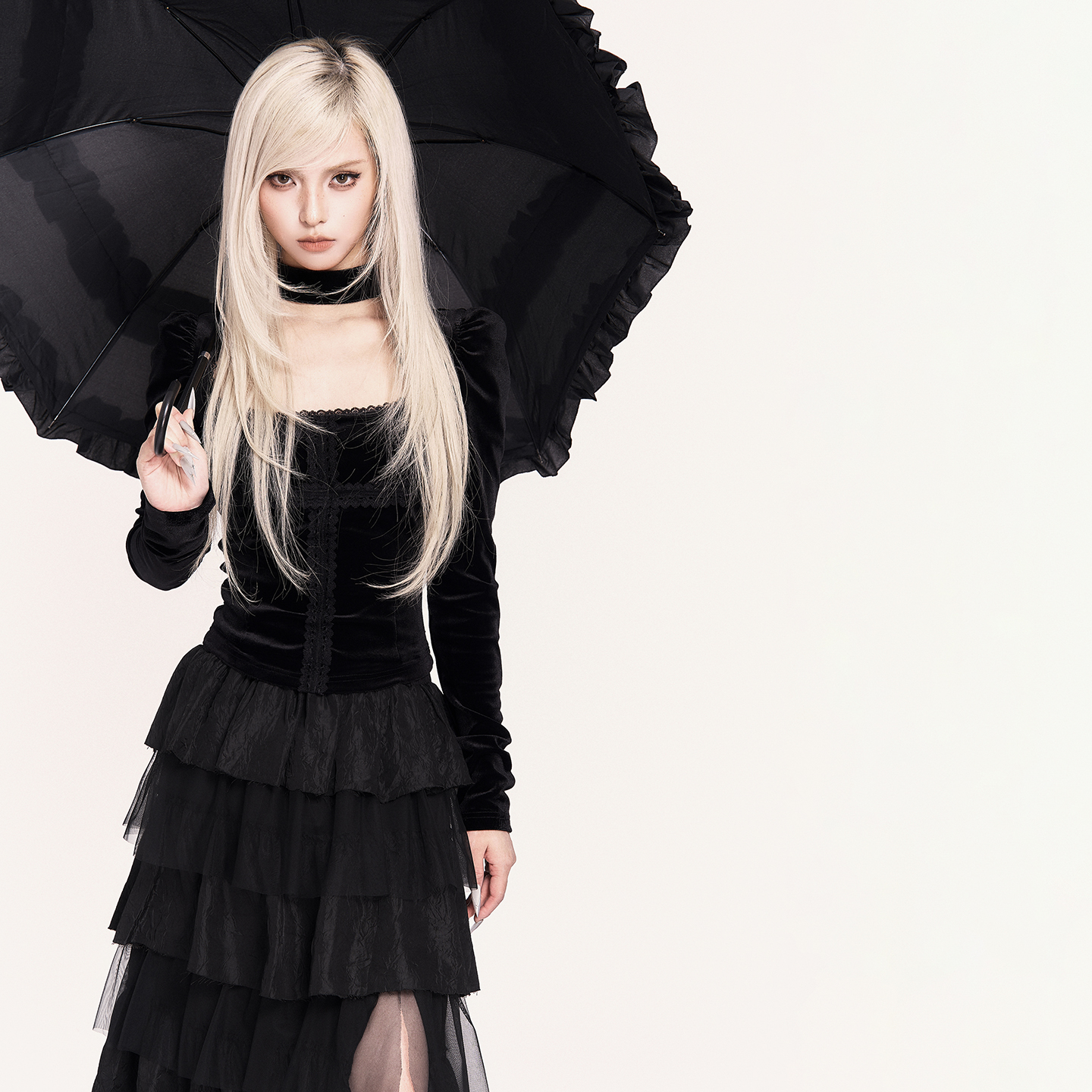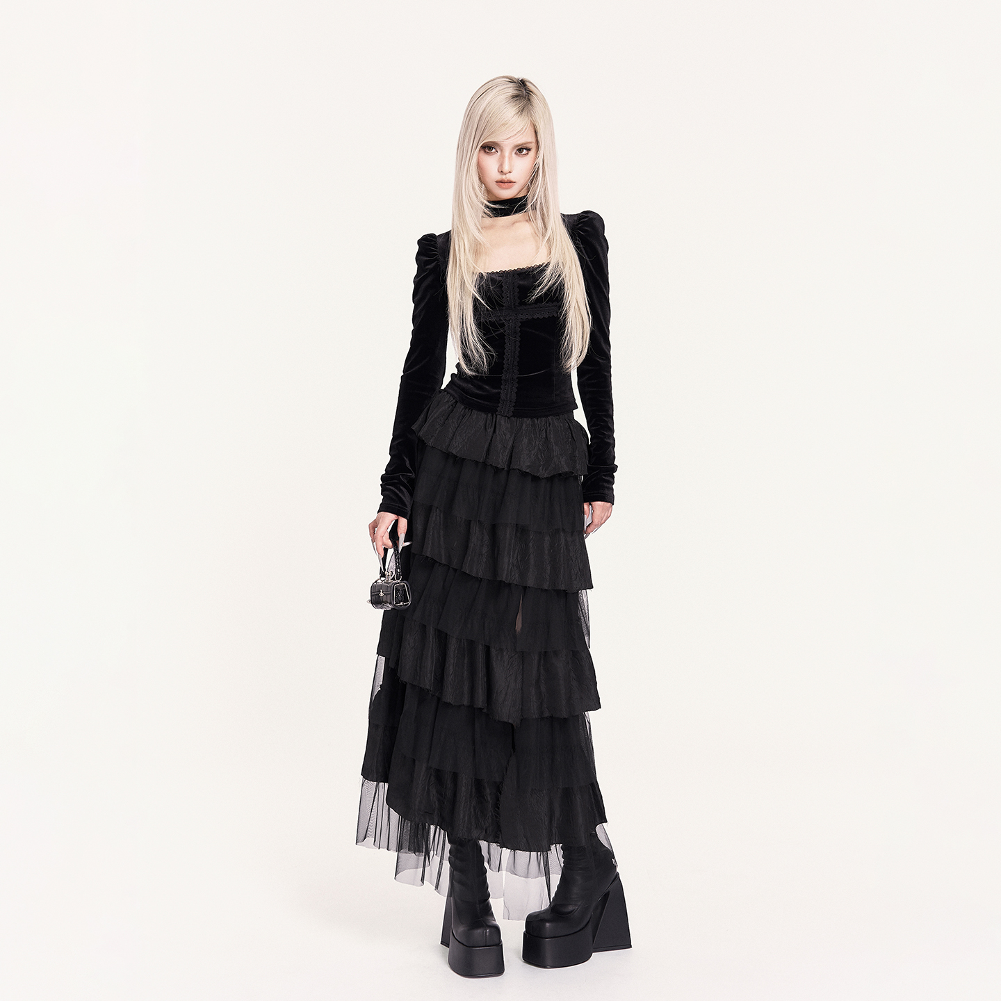 VOCK 追光逐影 暗黑浪漫仙女设计感拼接层次感网纱蛋糕半裙长裙子