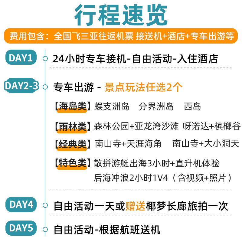 含机票2人私家团三亚旅游5天4晚跟团游纯玩蜈支洲岛游艇海南5日游