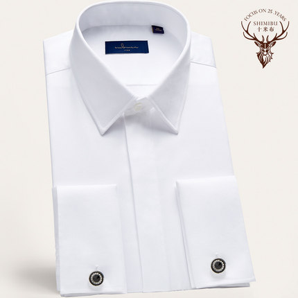 十米布丝光棉长袖法式衬衫男袖扣小方领新郎商务伴郎修身纯棉衬衣