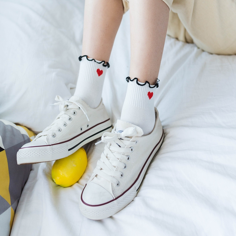 黑色袜子女中筒袜ins潮秋季松口月子袜春秋薄款可爱日系木耳边袜