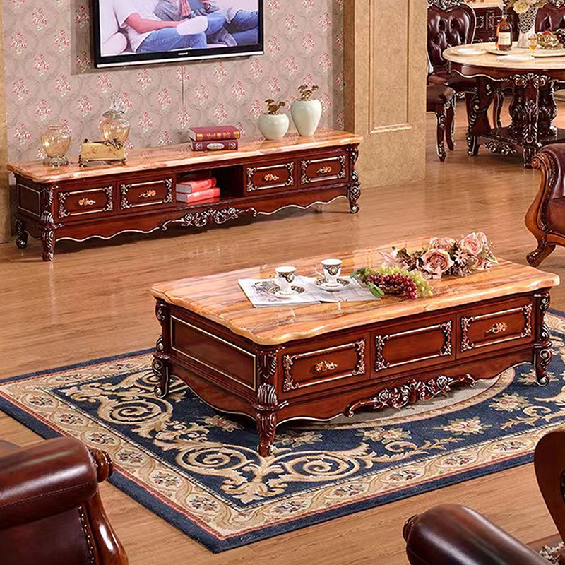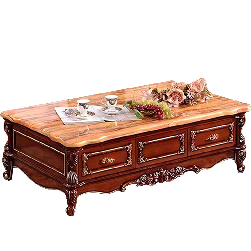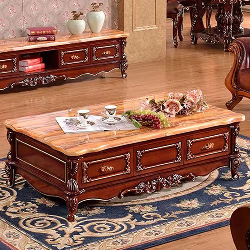 实木客厅茶几大理石台面橡木雕花小户型欧式茶几储物方形茶几199