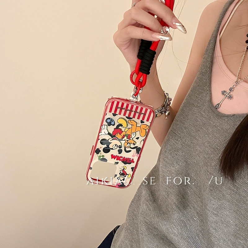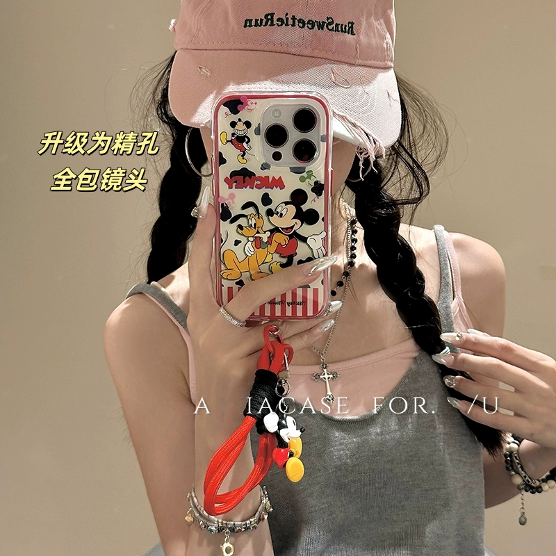 童趣卡通米奇狗狗适用苹果16PRO/15手机壳14PROMAX/13mini创意smax带挂绳iPhone15PRO/11PRO公仔XR软678/SE3