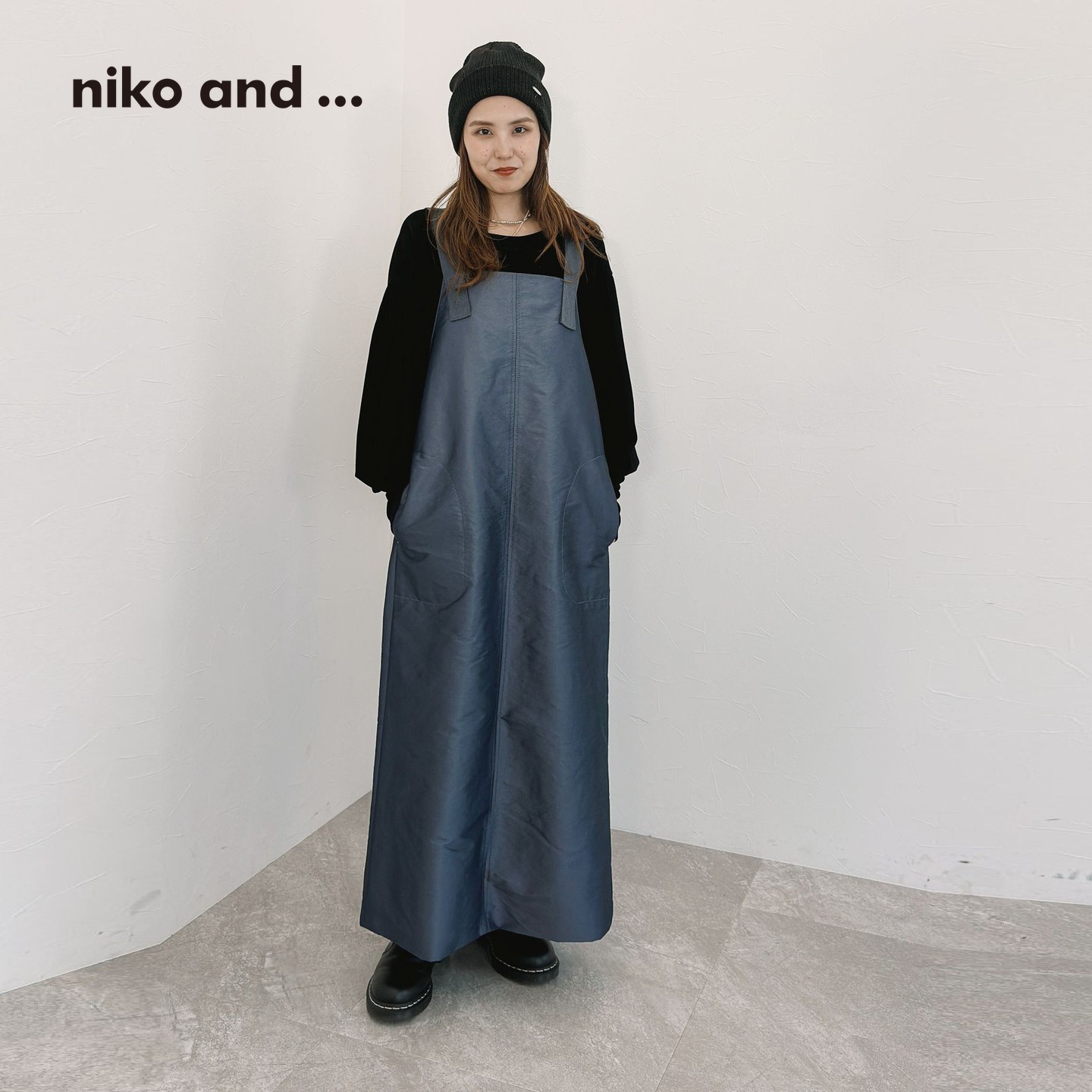 niko and ...连衣裙女2025秋冬新款时尚硬挺中长背带裙 135186