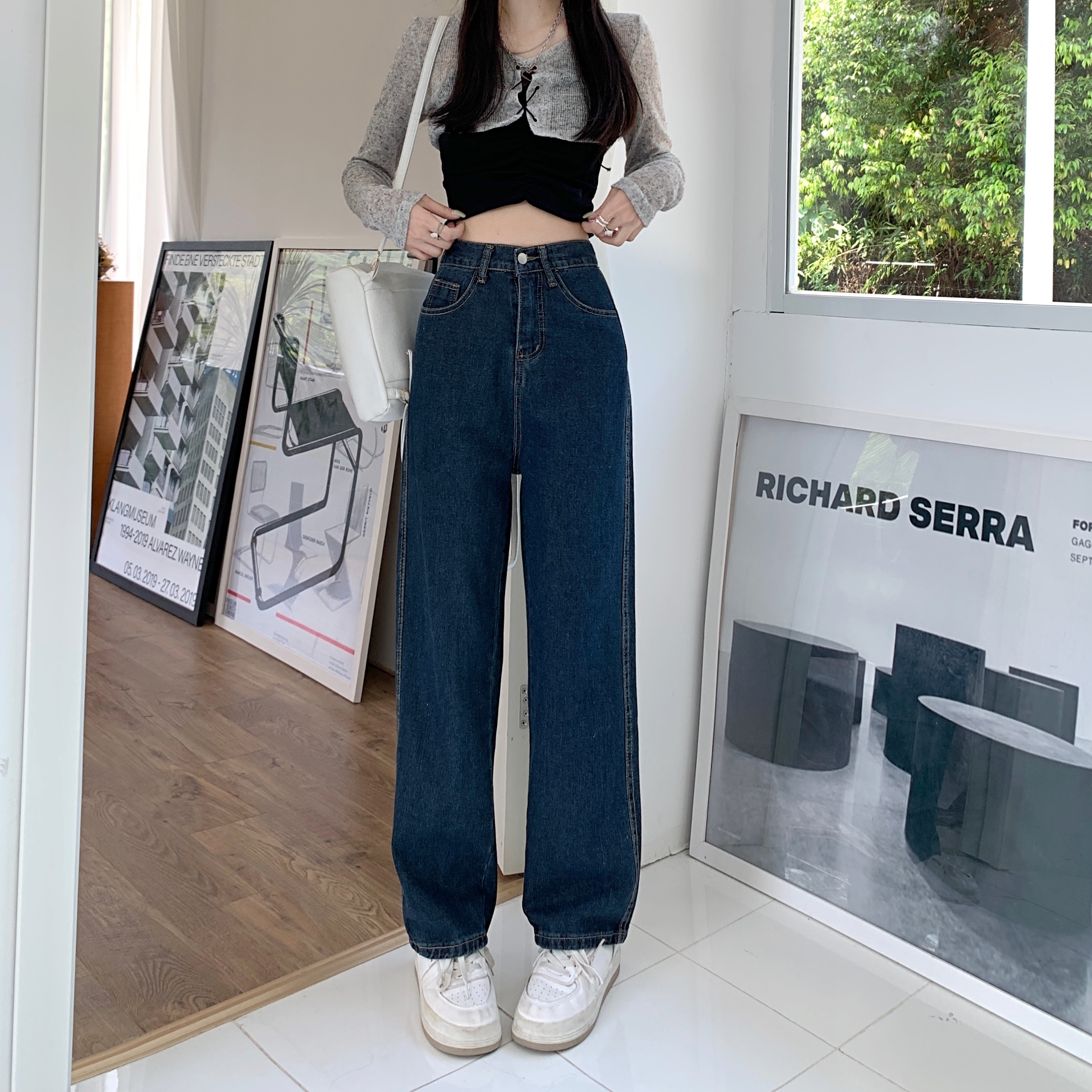 大码女装美式复古长裤胖mm高腰宽松牛仔裤女梨形显瘦直筒阔腿裤子