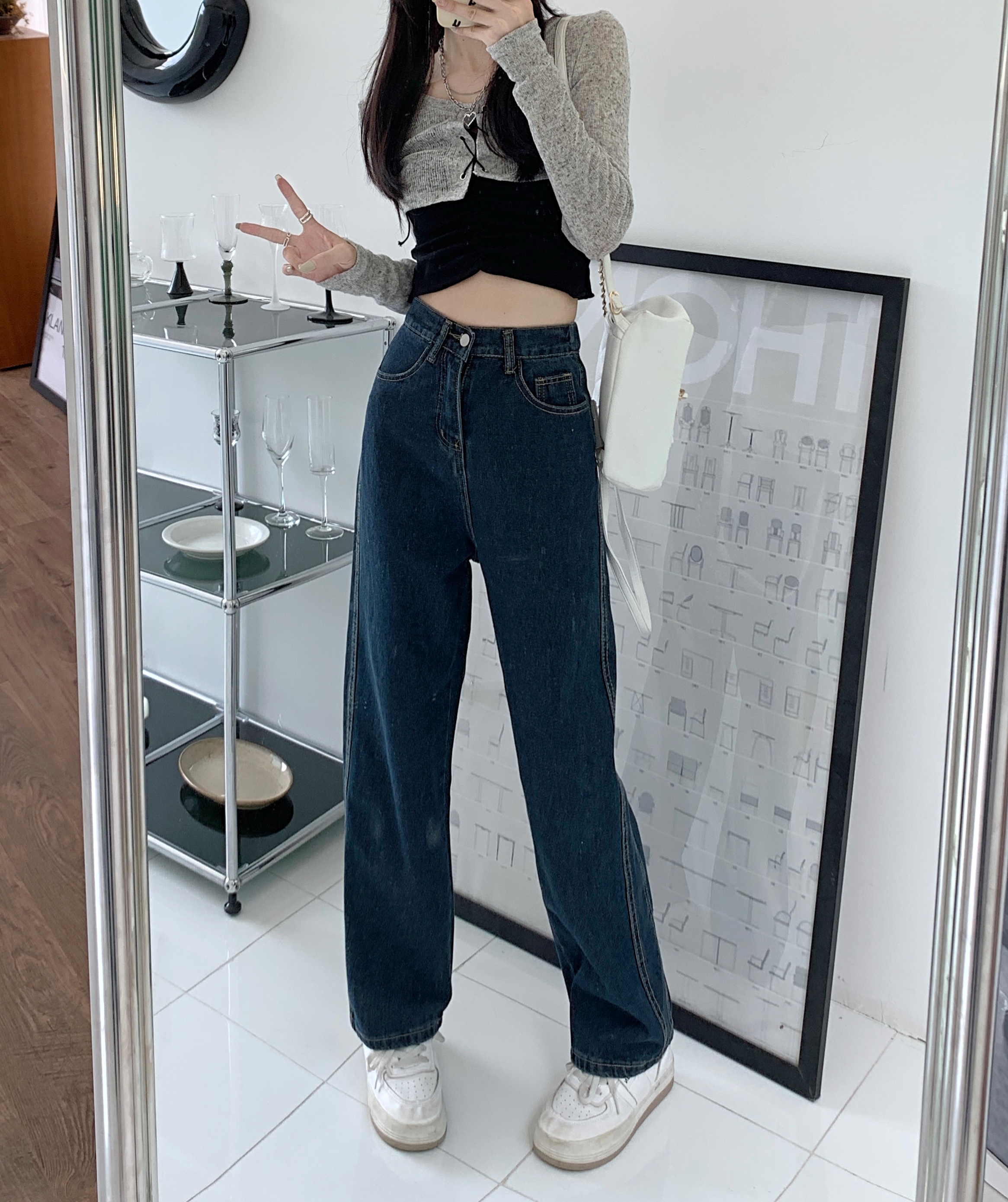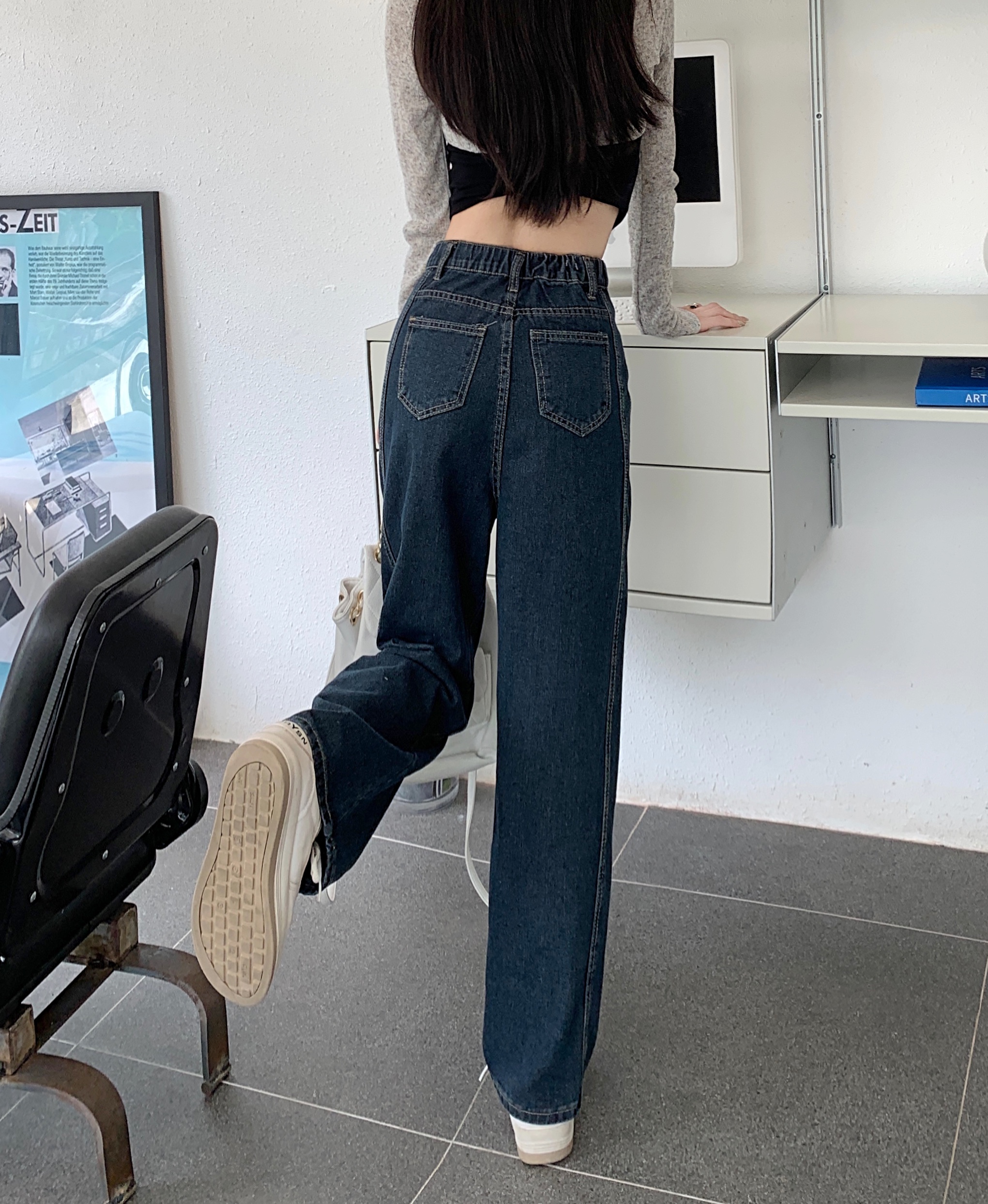 大码蓝灰色ins遮肉显瘦直筒女裤