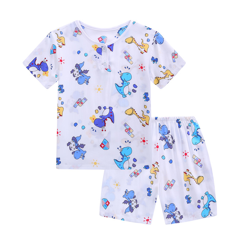 春夏季儿童短袖家居服套装男童女童宝宝绵绸薄款睡衣3-5 7-9周岁