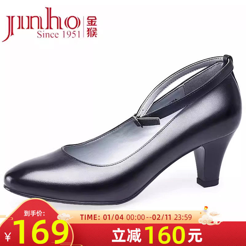 金猴女鞋春秋季款商务黑色一字扣搭扣职业女士6cm高跟鞋通勤皮鞋