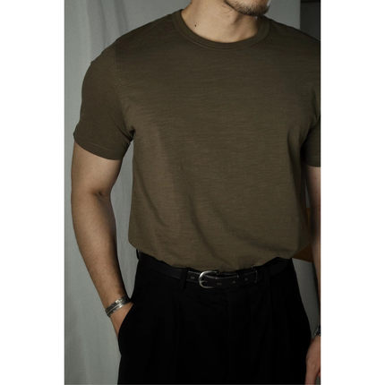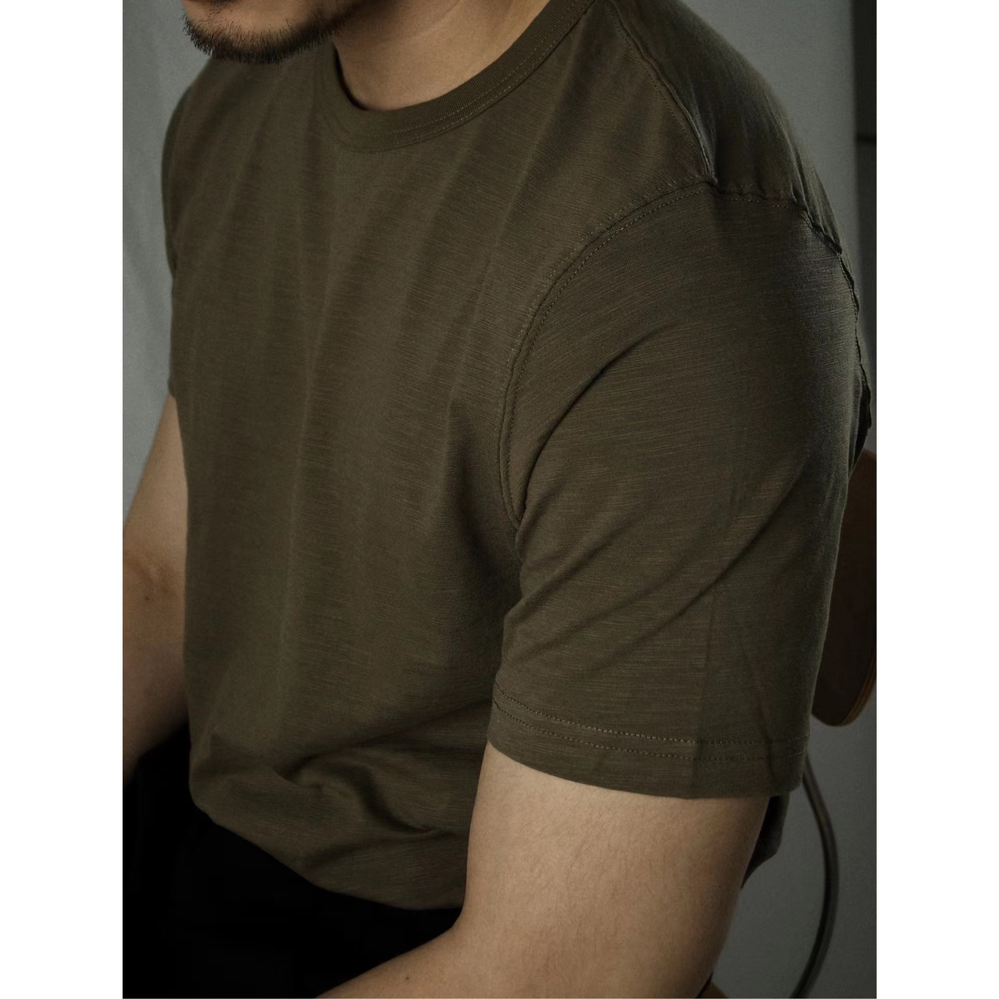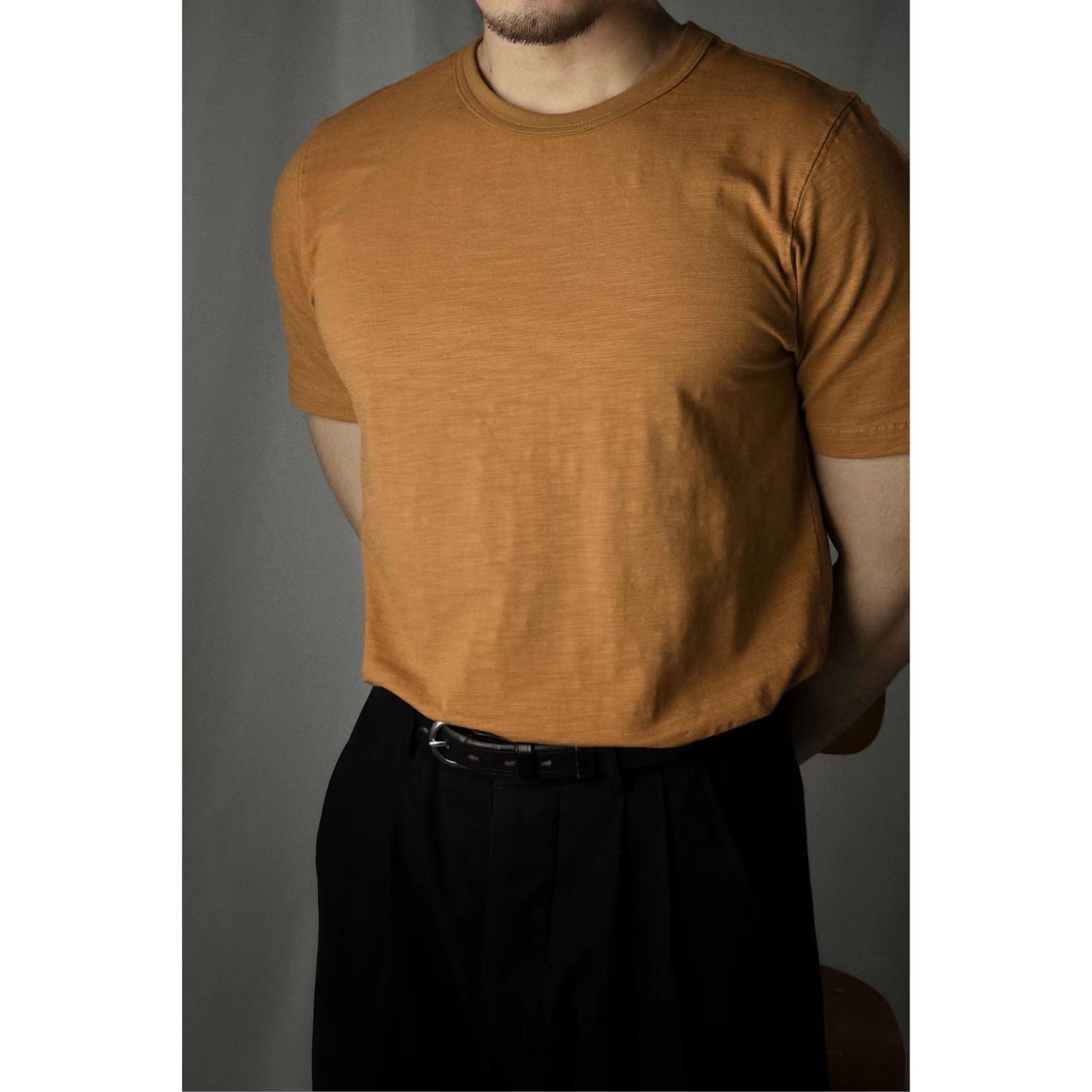 柴米竹节纹轻磅夏季全棉短袖T恤男美式复古休闲窄肩半血阿美咔叽