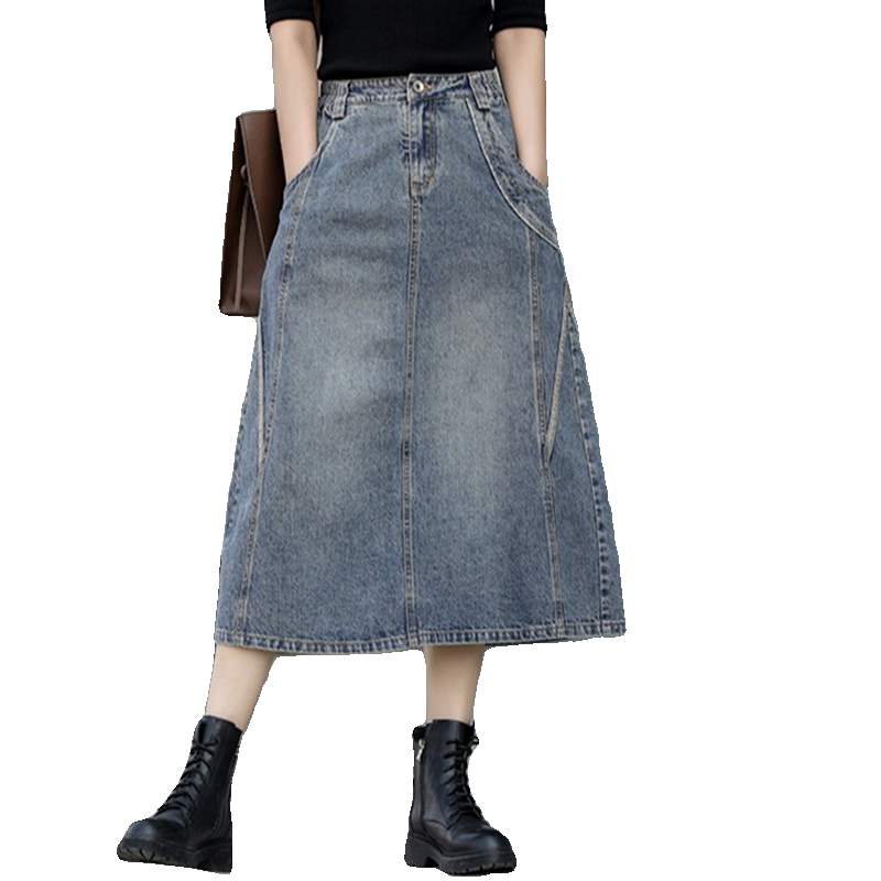 中长裙A字裙复古A型松紧腰半身裙