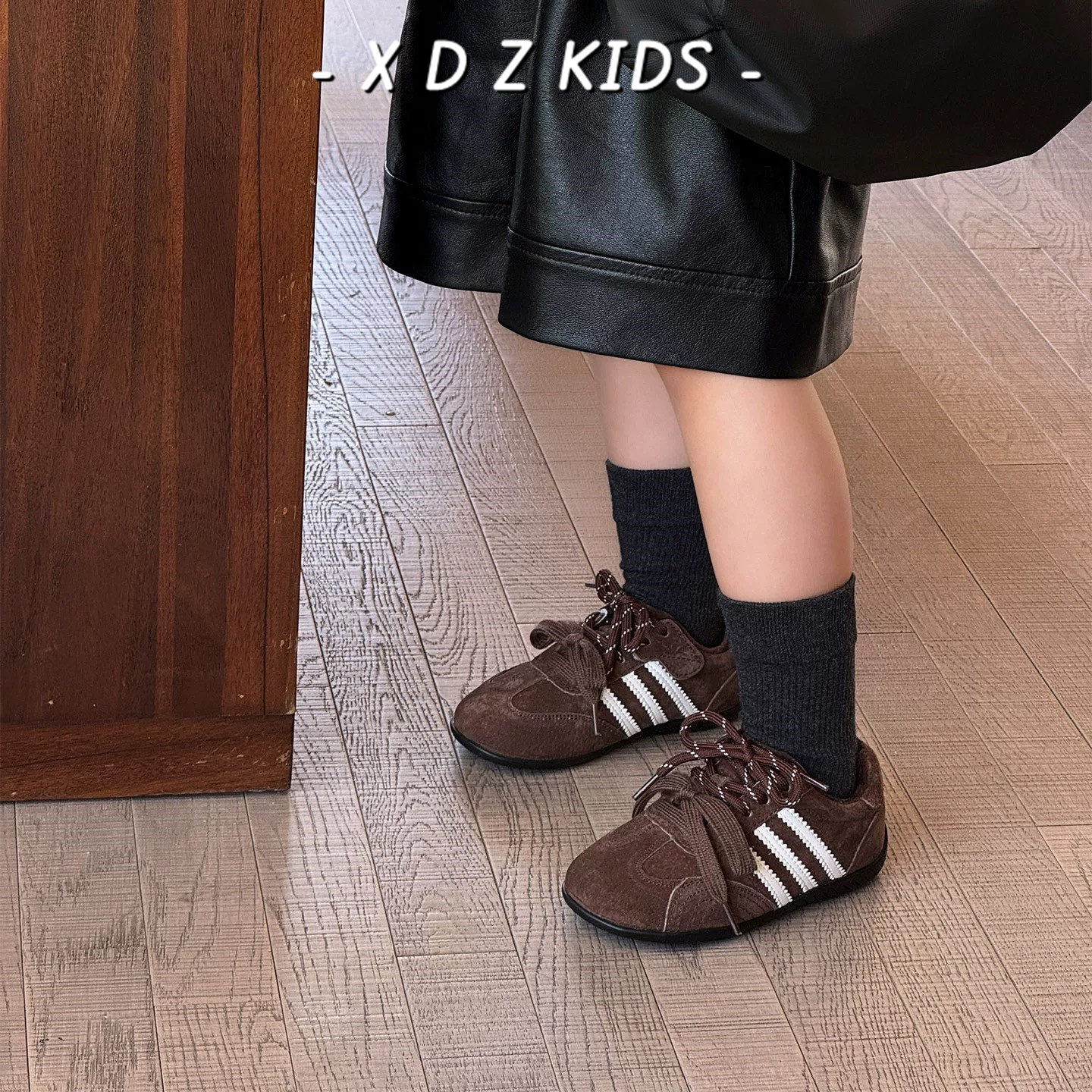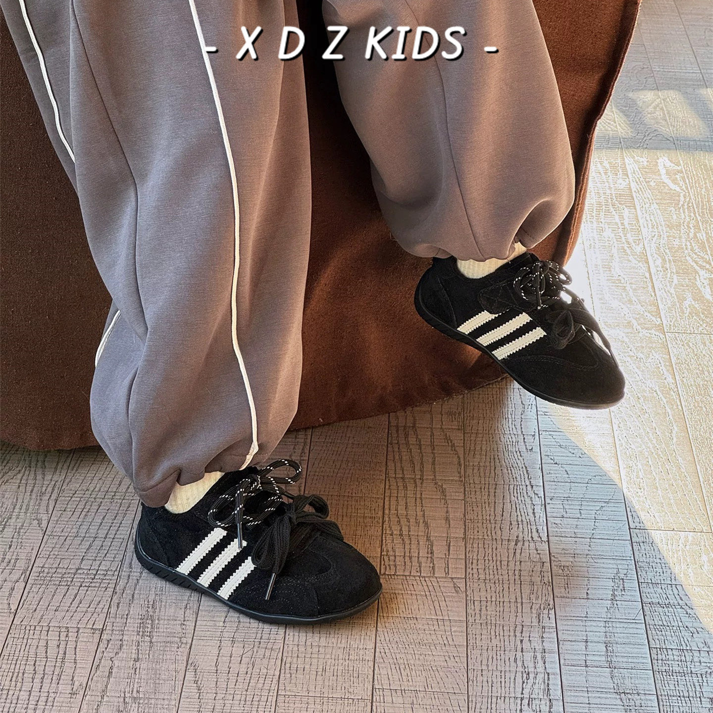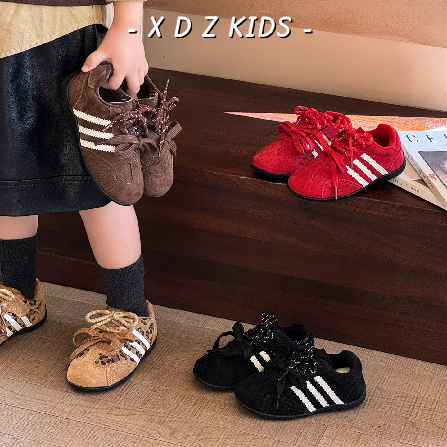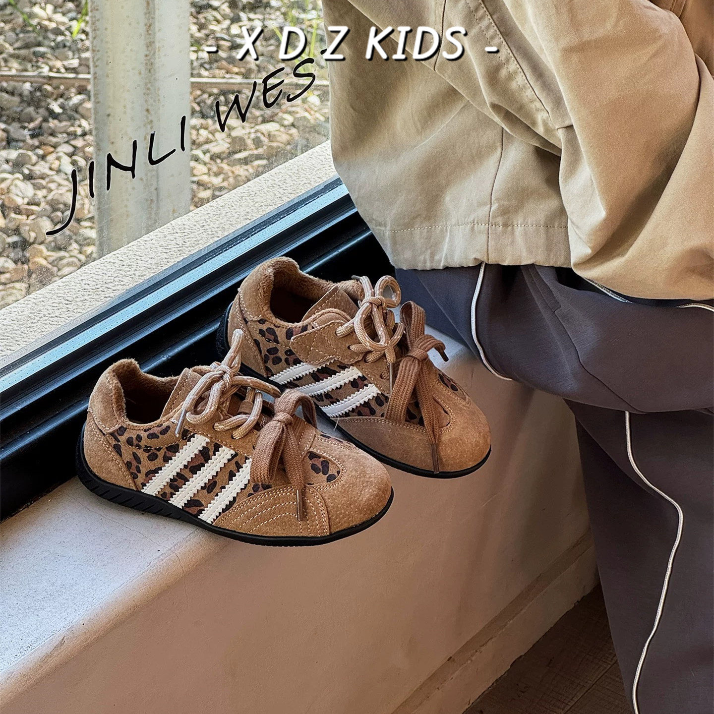 2025新款真皮儿童运动鞋秋冬二棉男童赛车板鞋宝宝加绒女童德训鞋