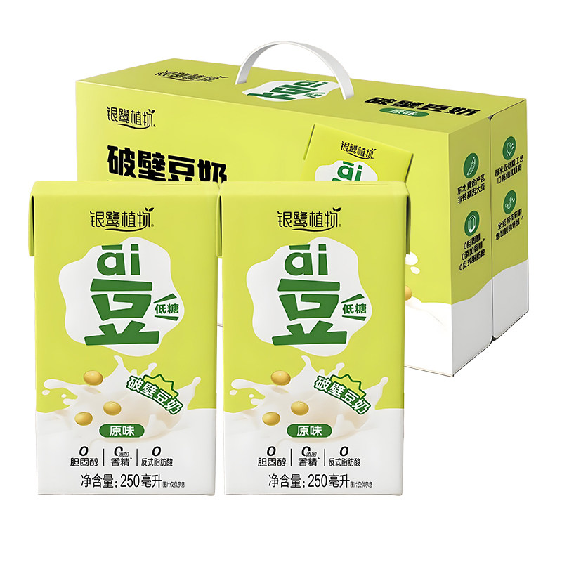 新日期】银鹭破壁豆奶250ml*24盒低糖早餐奶植物蛋白豆浆年货送礼
