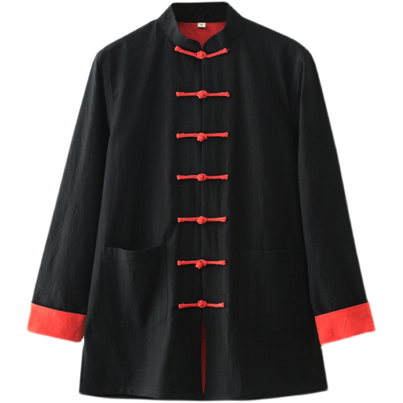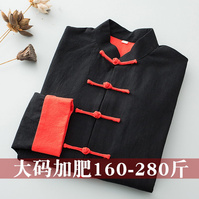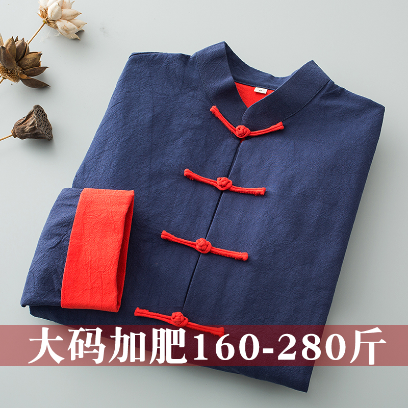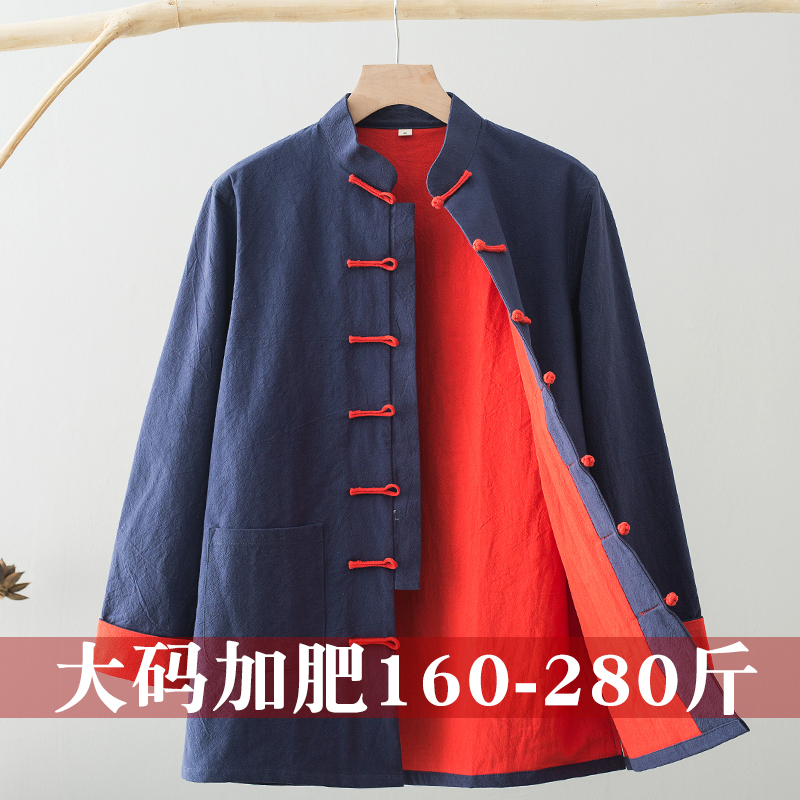 大码唐装男士亚麻长袖外套加肥加大胖子特大码中国风中式男装上衣