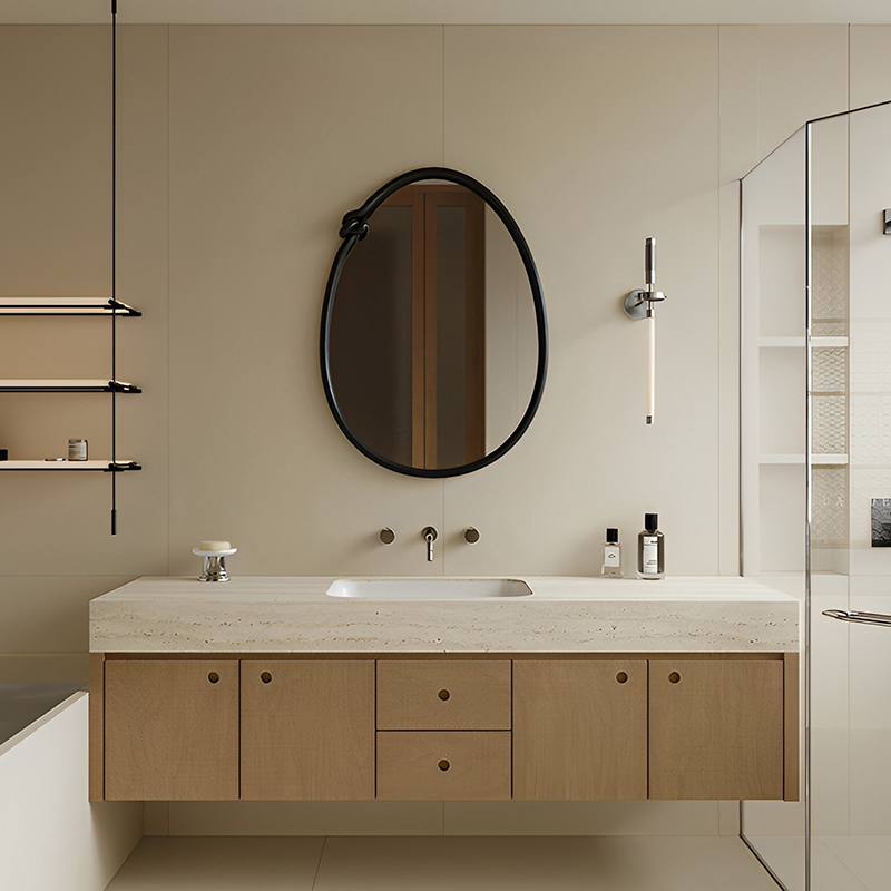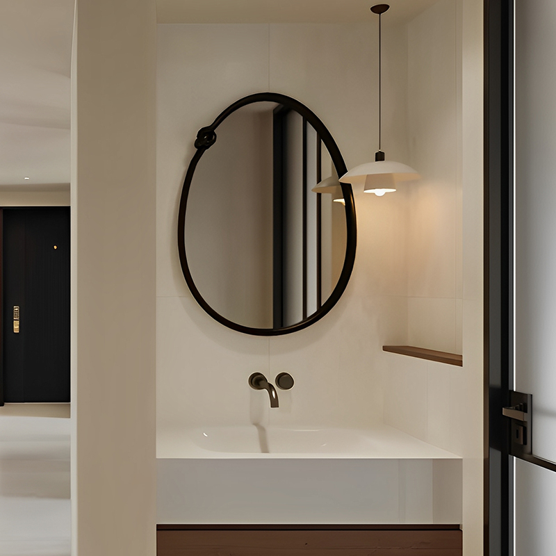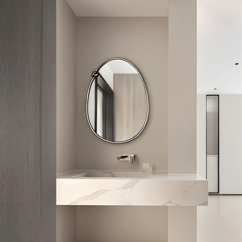 创意椭圆led智能浴室镜高级艺术壁挂装饰镜侘寂风家居设计化妆镜