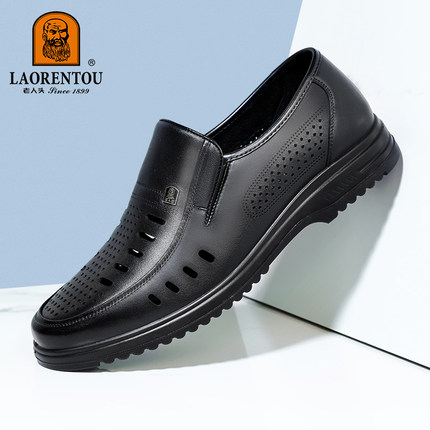 老人头皮鞋男鞋夏季镂空鞋商务休闲打孔真皮爸爸鞋父亲皮凉鞋子
