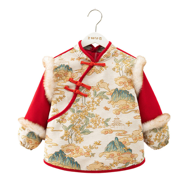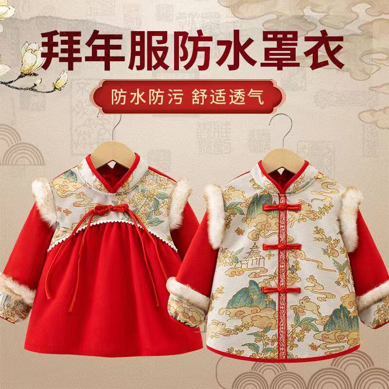 国风罩衣宝宝新年拜年服儿童春节大红围裙男女孩秋冬吃饭唐装围兜