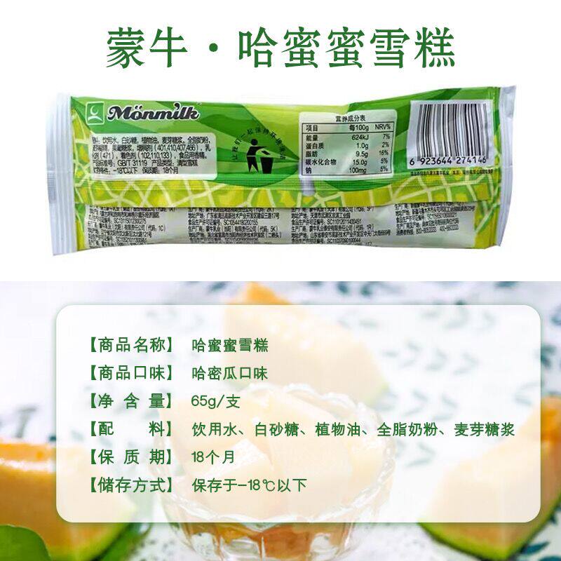40支蒙牛哈蜜蜜雪糕冰棍经典哈密瓜口味冰淇淋棒冰冷饮65g