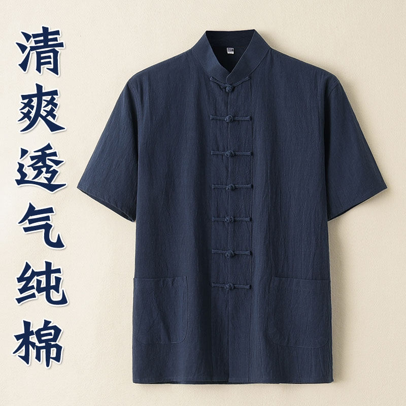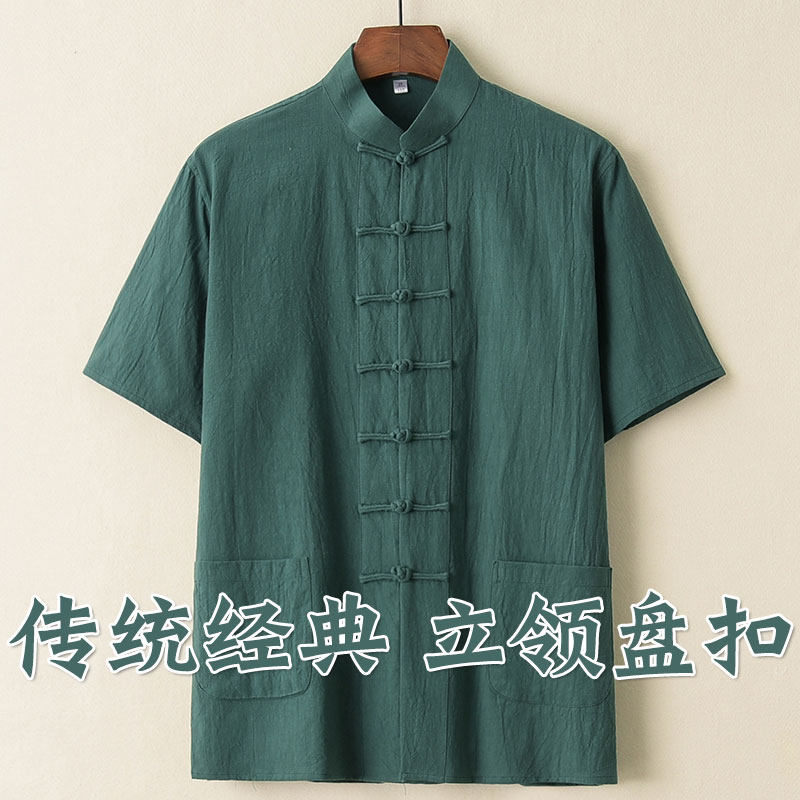 中老年唐装男短袖中国风中式男装夏季纯棉上衣爸爸男款爷爷衬衫