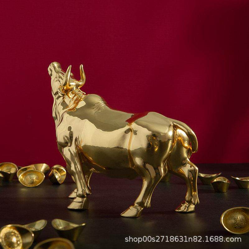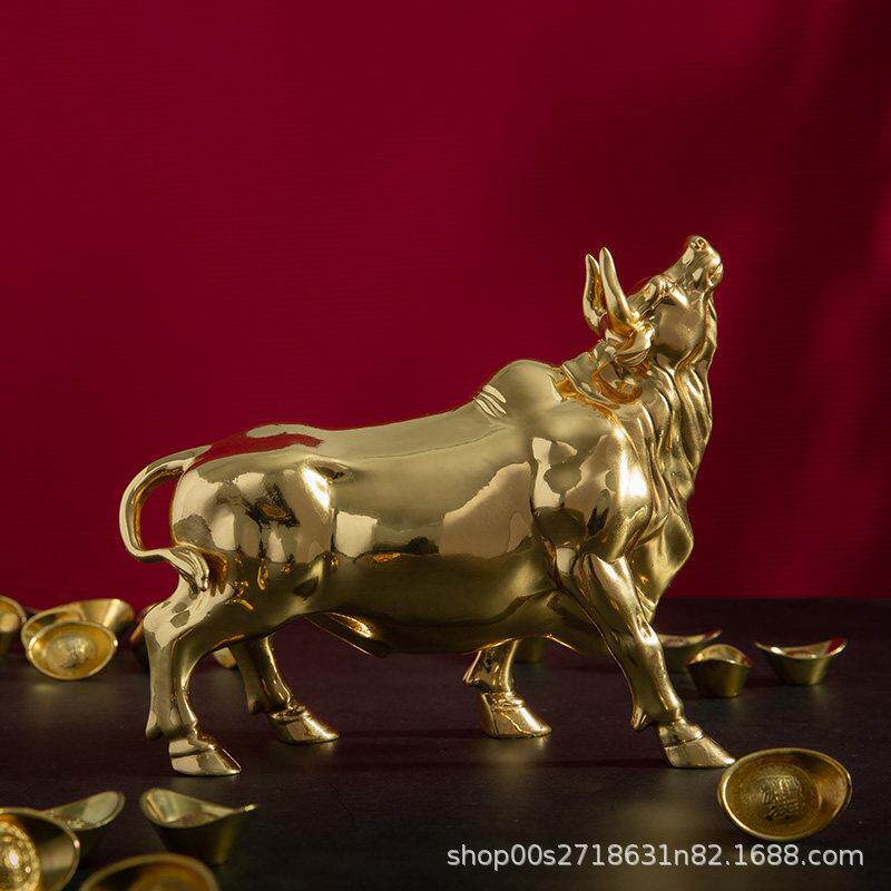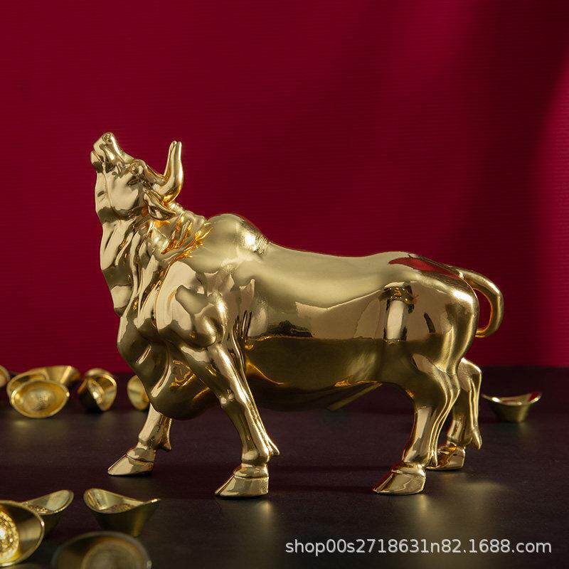 铜牛摆件贴金工艺品牛气冲天华尔街股市金牛办公桌装饰品