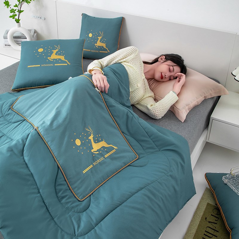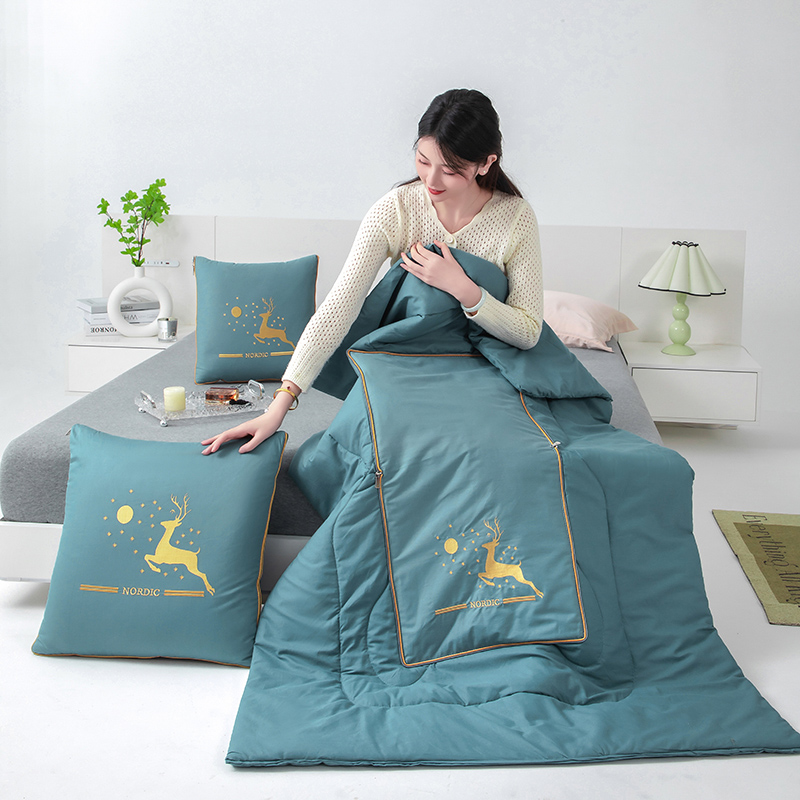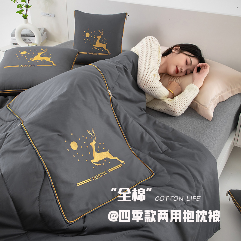 北欧纯棉抱枕被子两用办公室午睡可折叠被毯二合一汽车靠垫空调被