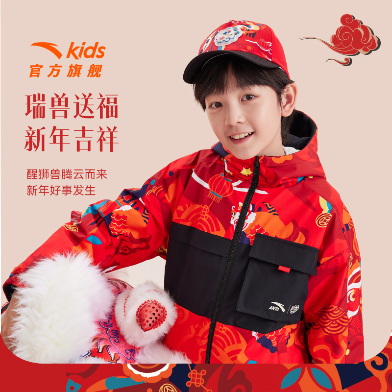 醒狮系列安踏儿童男童双面穿运动上衣2025春季新款儿童三防厚外套