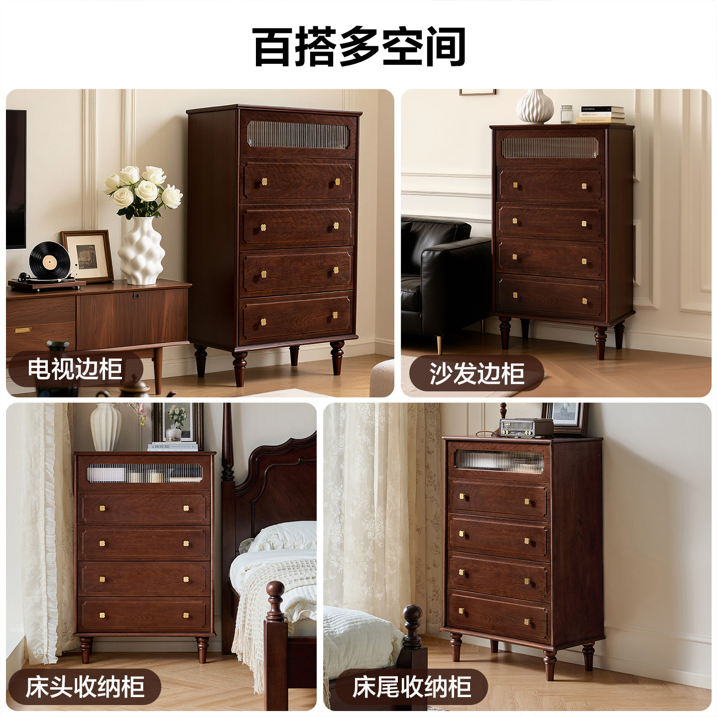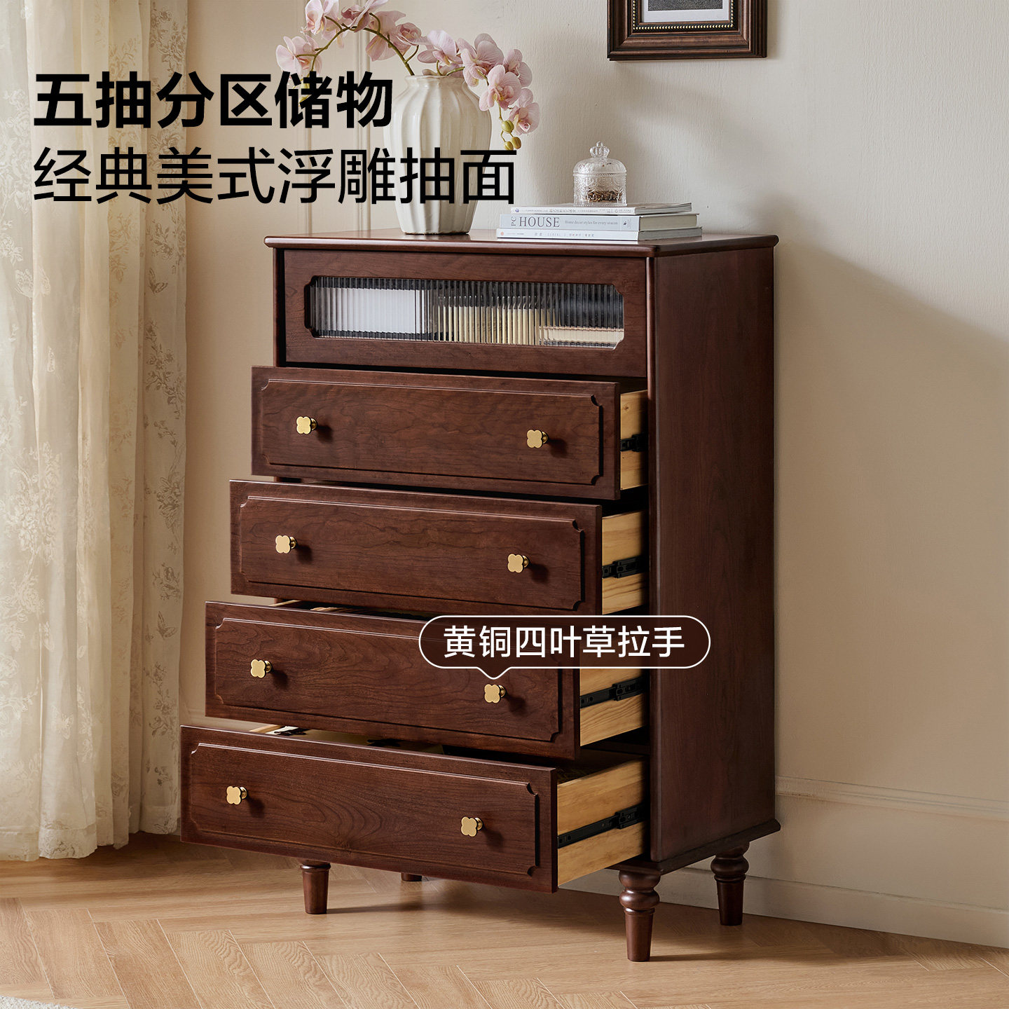 全友家居卧室靠墙收纳储物置物柜2025新款美式复古风全实木五斗柜