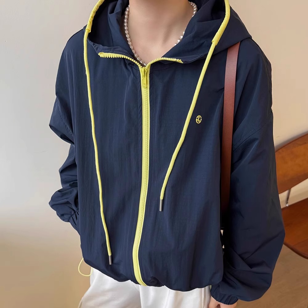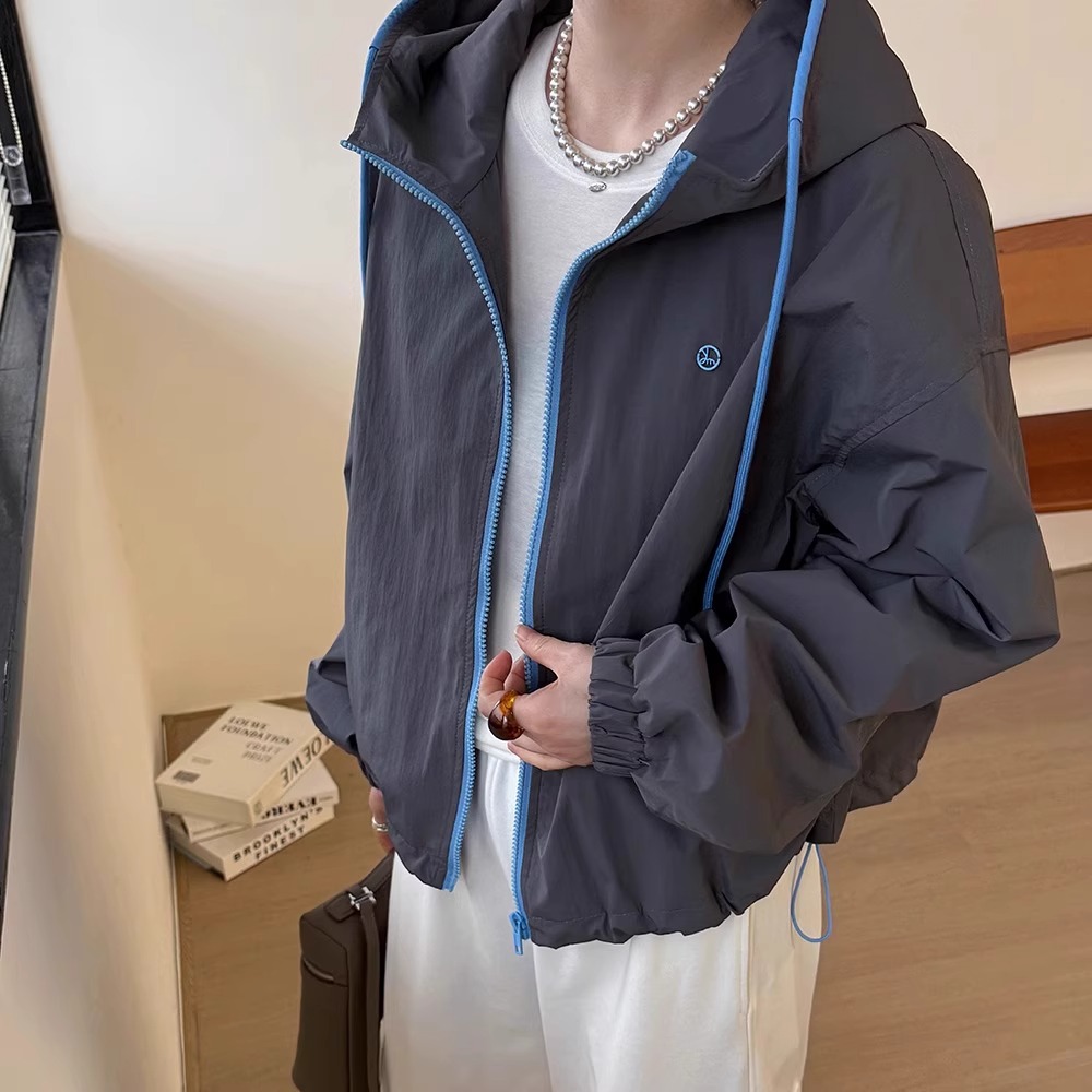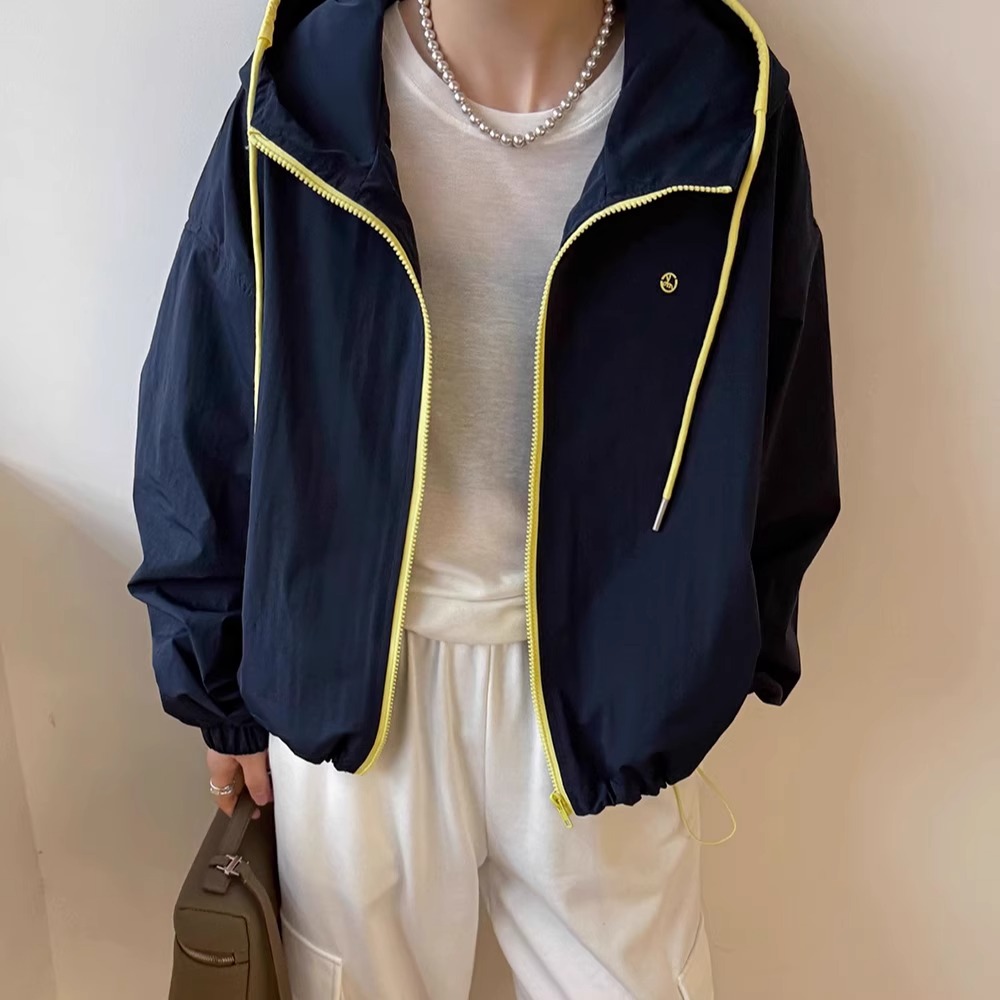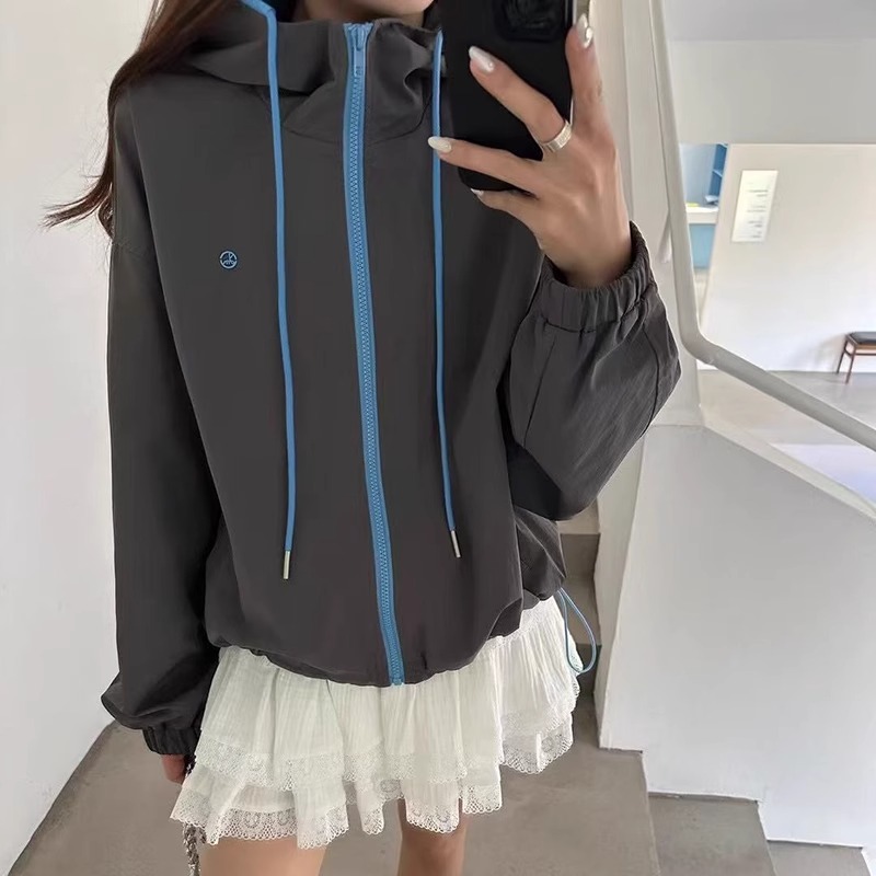 韩系撞色连帽拉链外套女宽松休闲