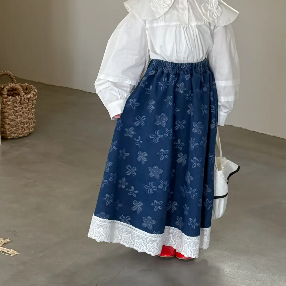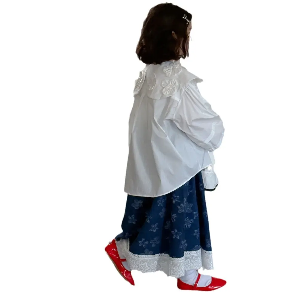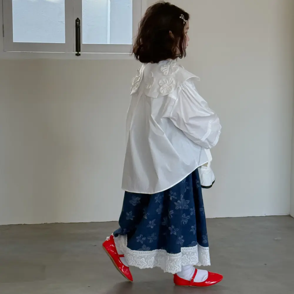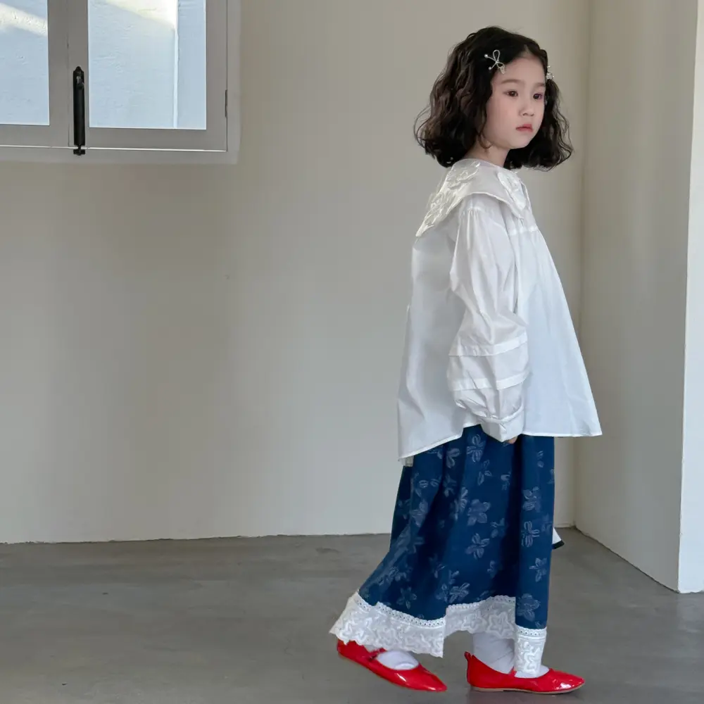乔伊思童装女童衬衫春款韩版翻领花朵衬衣儿童休闲宽松荷叶领上衣
