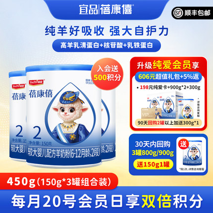 宜品蓓康僖婴儿配方羊奶粉2段150g*3罐6-12月宝宝试喝装官网正品