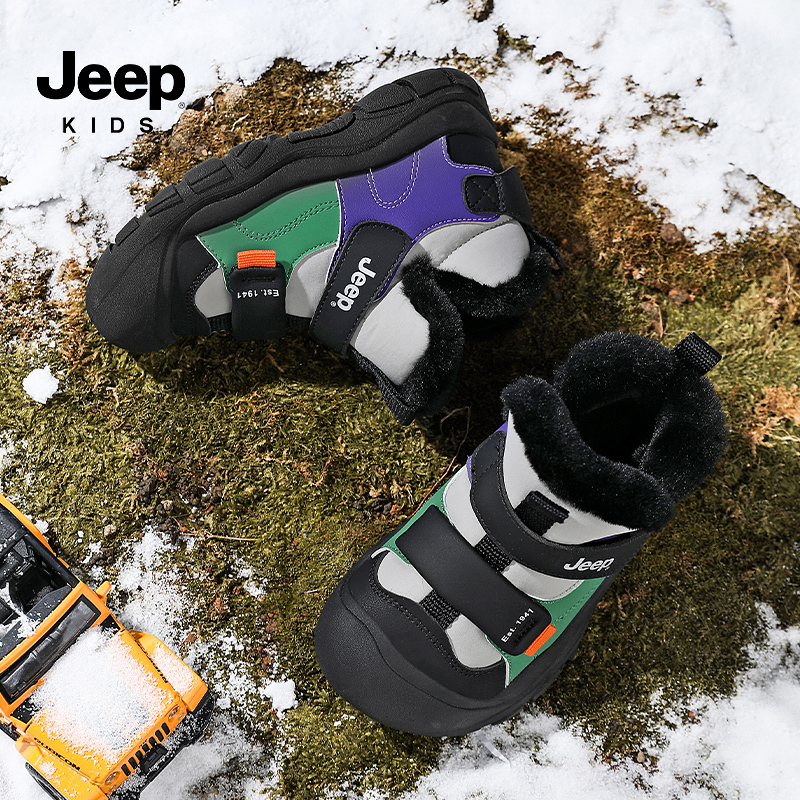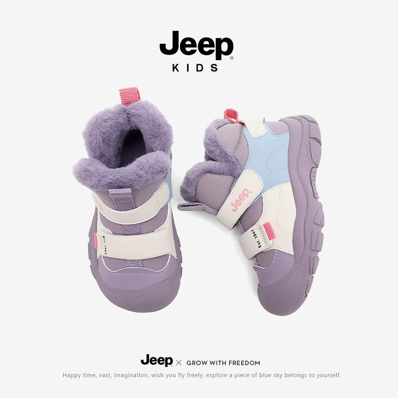 jeep儿童雪地靴2025新款加绒保暖防寒靴子女童高帮时尚棉靴大棉鞋