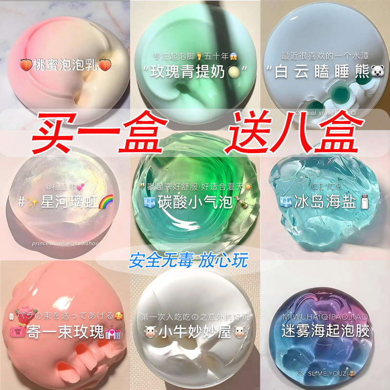 网红新款透明起泡胶儿童玩具水晶泥正版M家史莱姆套装盒粘土假水
